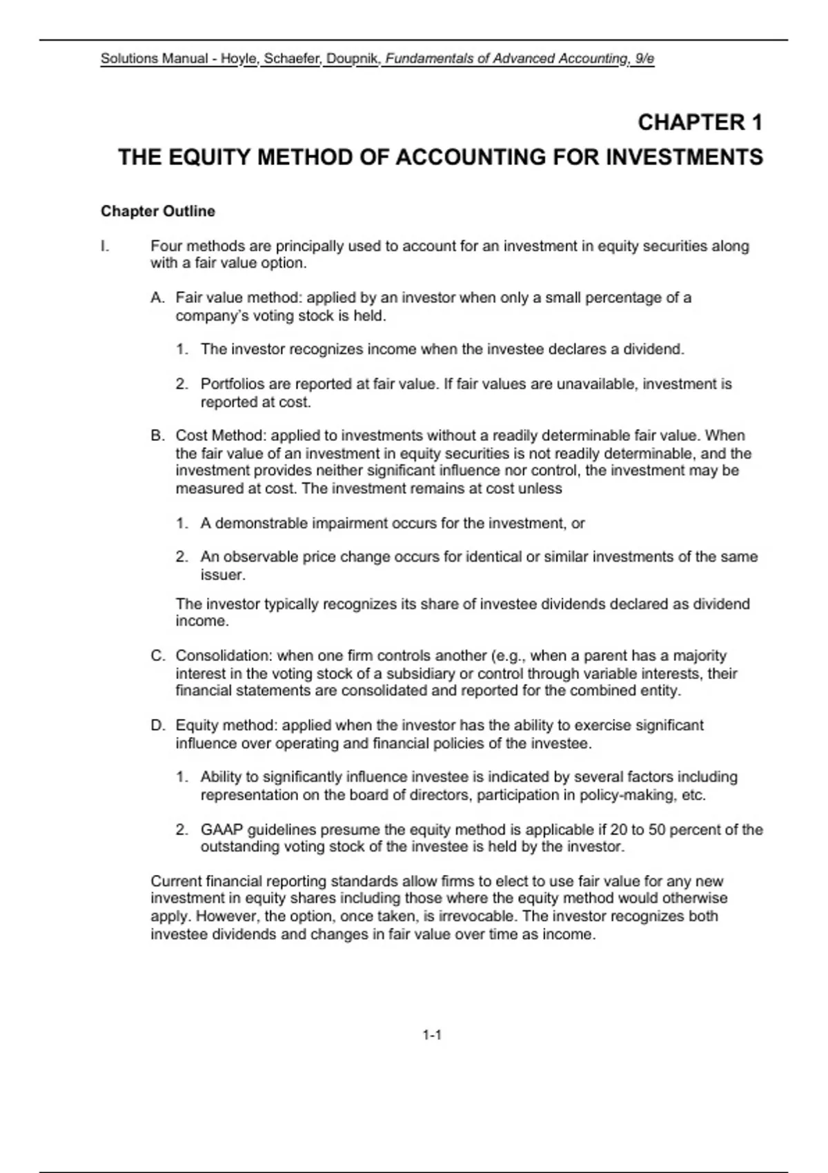 ,Chapter 01 - The Equity Method of Accounting for Investments – Hoyle, Schaefer, Doupnik, Fundamentals
