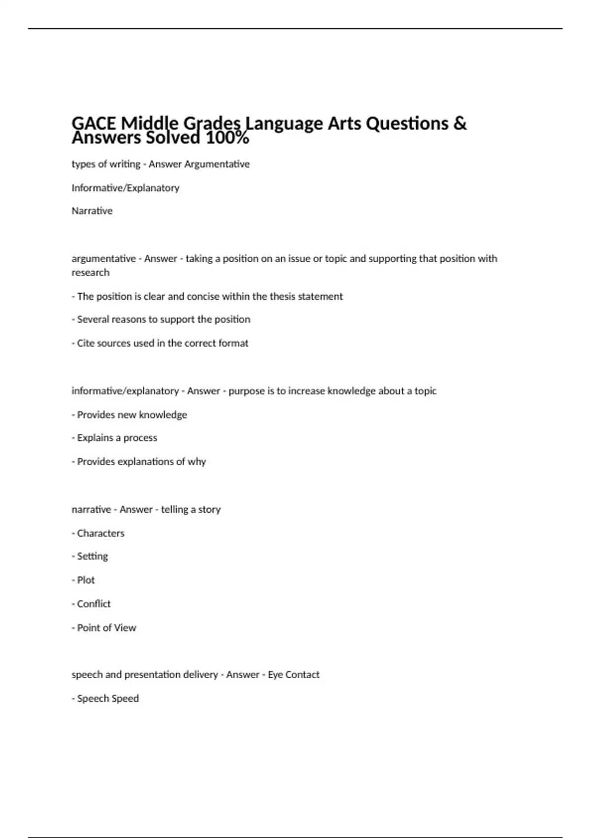 GACE Middle Grades Language Arts Questions & Answers Solved 100%