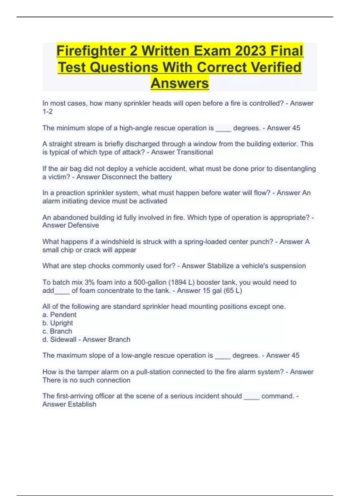 Firefighter 2 Written Exam 2023 Final Test Questions With Correct Verified Answers