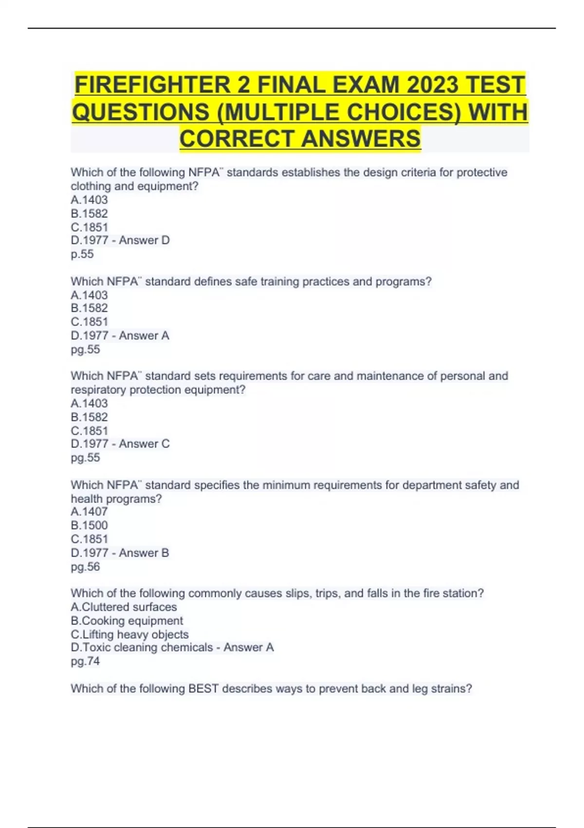 FIREFIGHTER 2 FINAL EXAM 2023 TEST QUESTIONS (MULTIPLE CHOICES) WITH CORRECT ANSWERS
