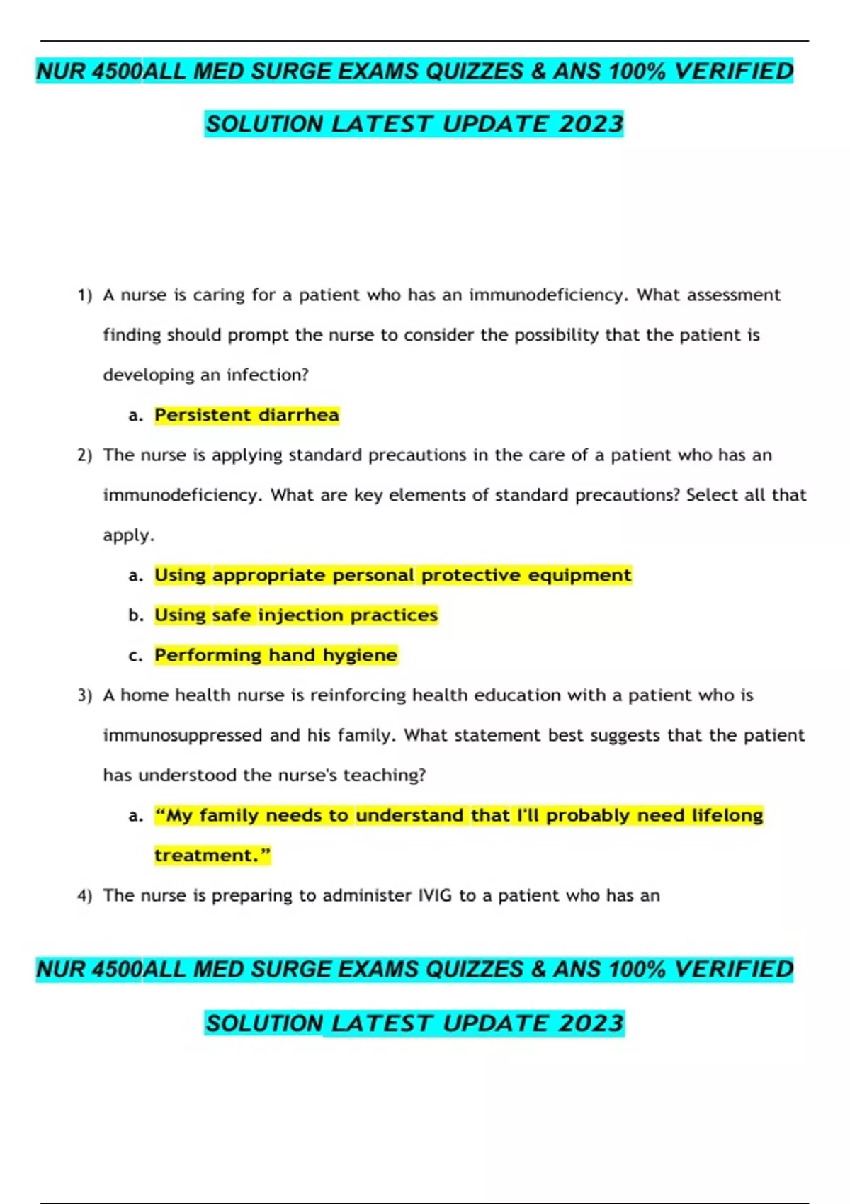 NUR 4500ALL MED SURGE EXAMS QUIZZES & ANS 100% VERIFIED SOLUTION LATEST UPDATE 2023