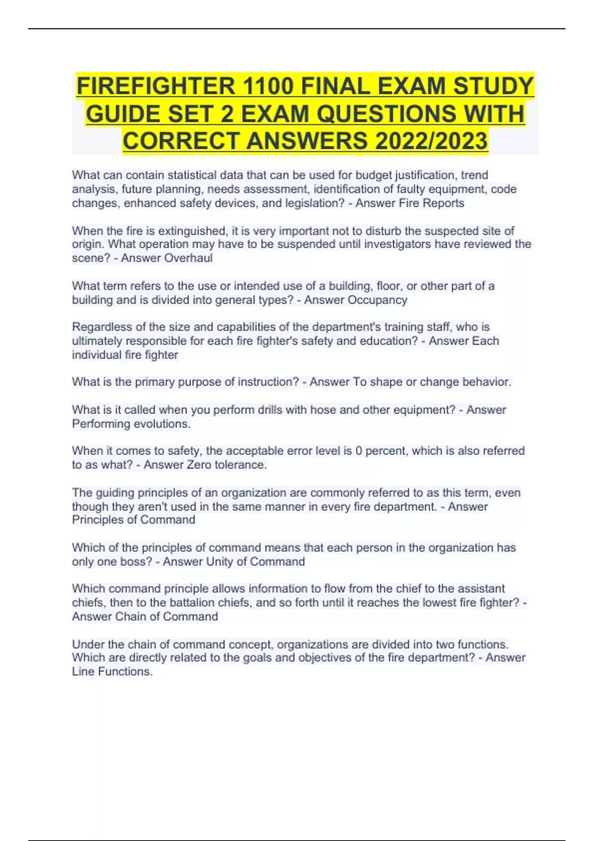 FIREFIGHTER 1100 FINAL EXAM STUDY GUIDE SET 2 EXAM QUESTIONS WITH CORRECT ANSWERS 2022/2023