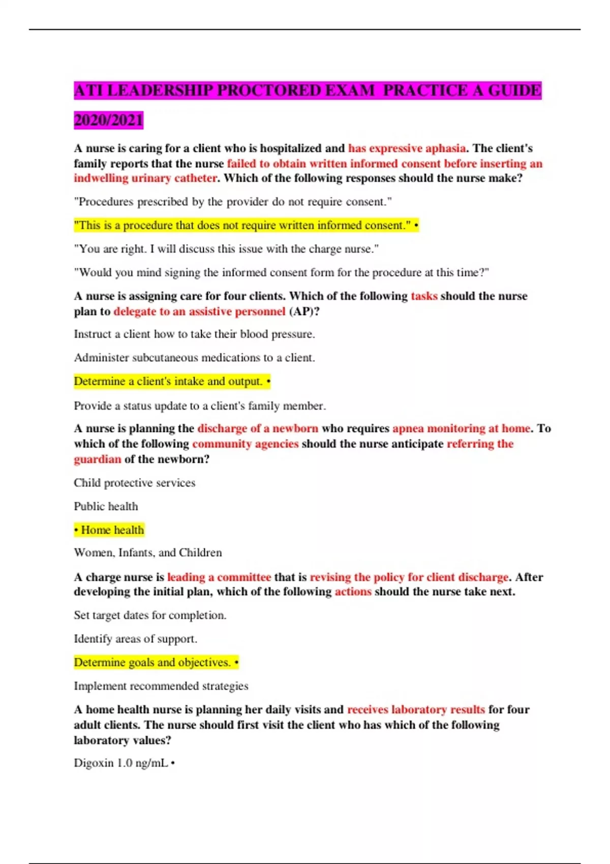 ATI LEADERSHIP PROCTORED EXAM PRACTICE A GUIDE 2020/2021