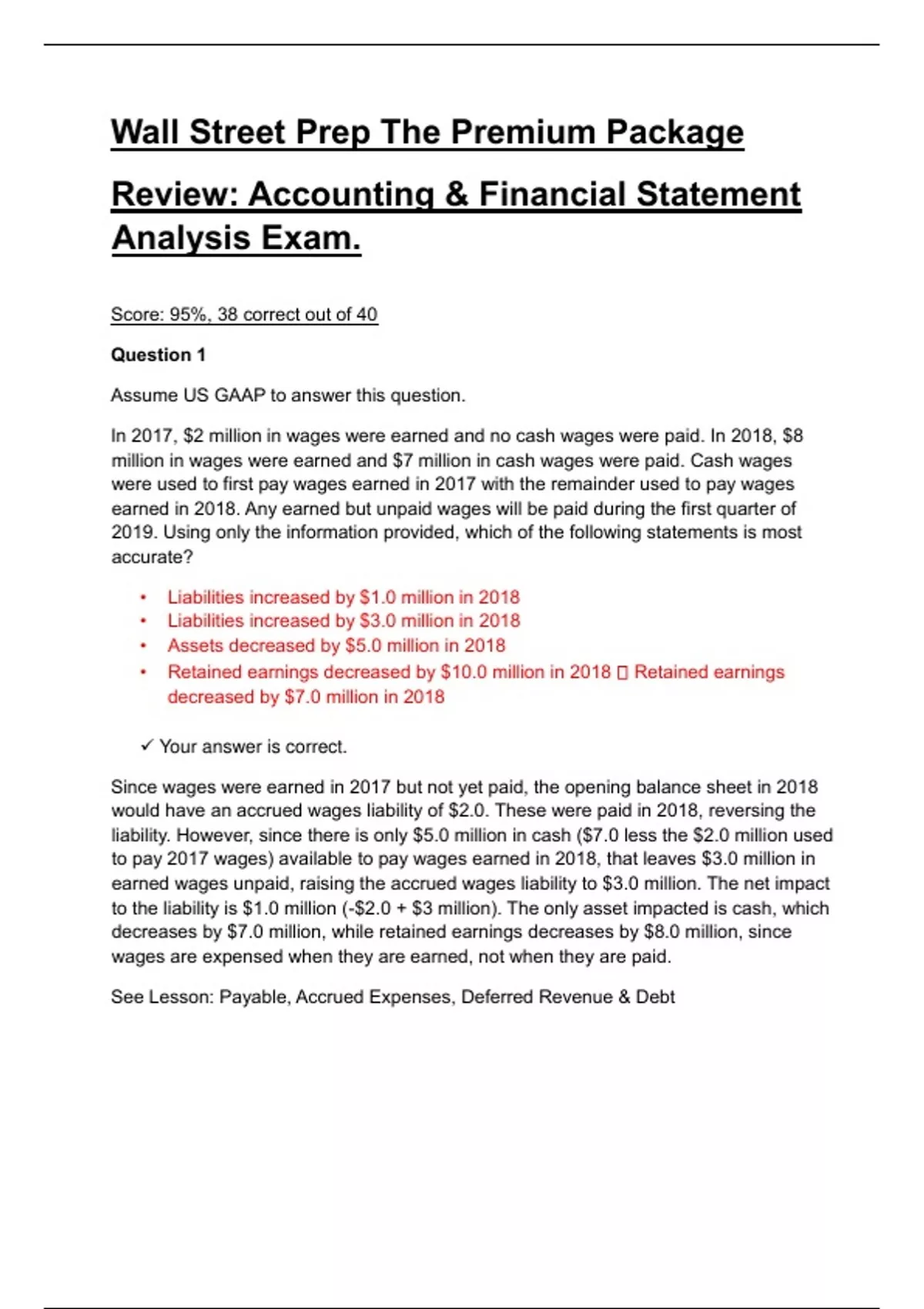 Wall Street Prep The Premium Package Review: Accounting & Financial Statement Analysis Exam.