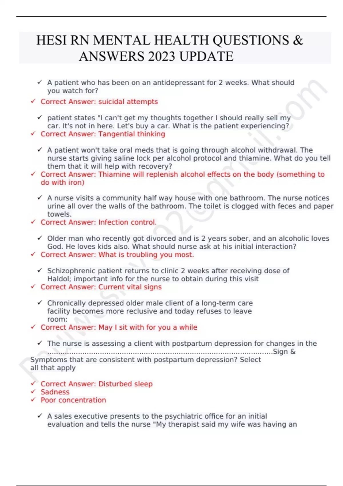 HESI RN MENTAL HEALTH QUESTIONS & ANSWERS 2023 UPDATE