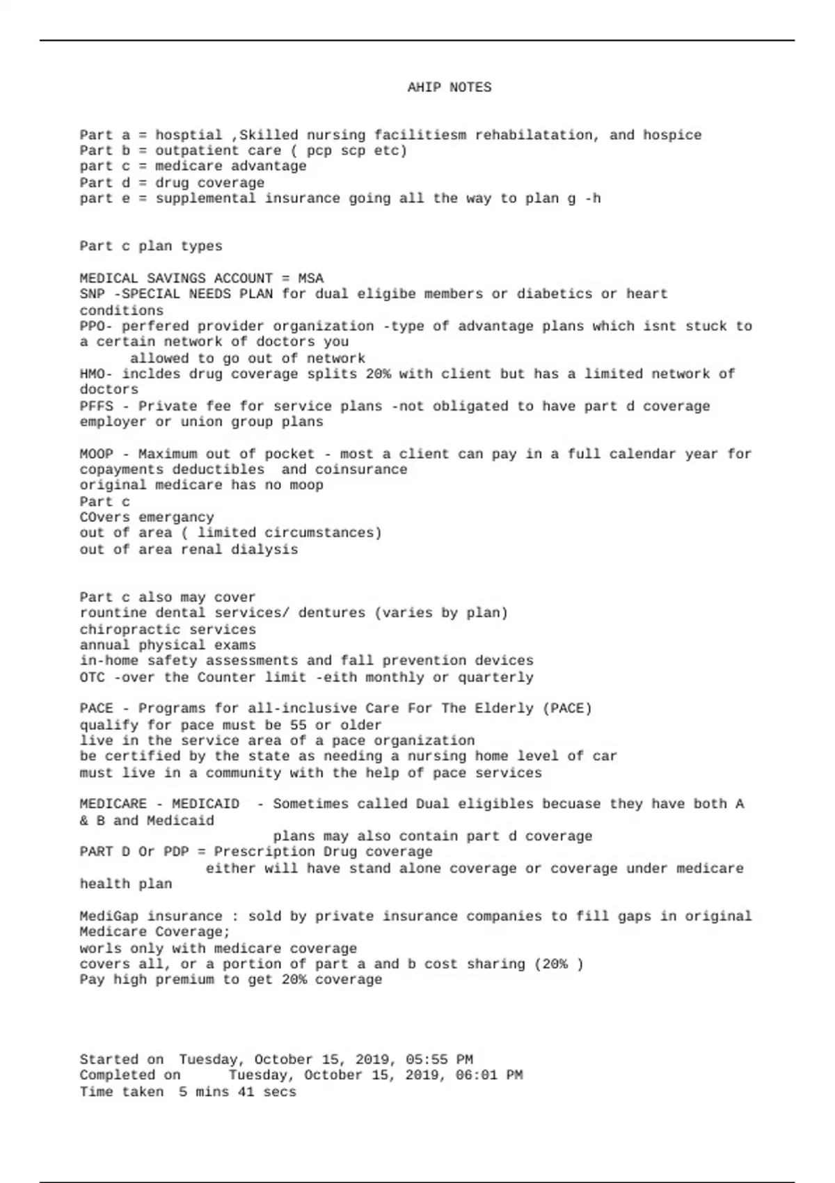 AHIP OVERVIEW of MEDICARE PROGRAM BASICS: CHOICE, ELIGIBILTY, AND BENEFITS/ AHIP Test Review Questions