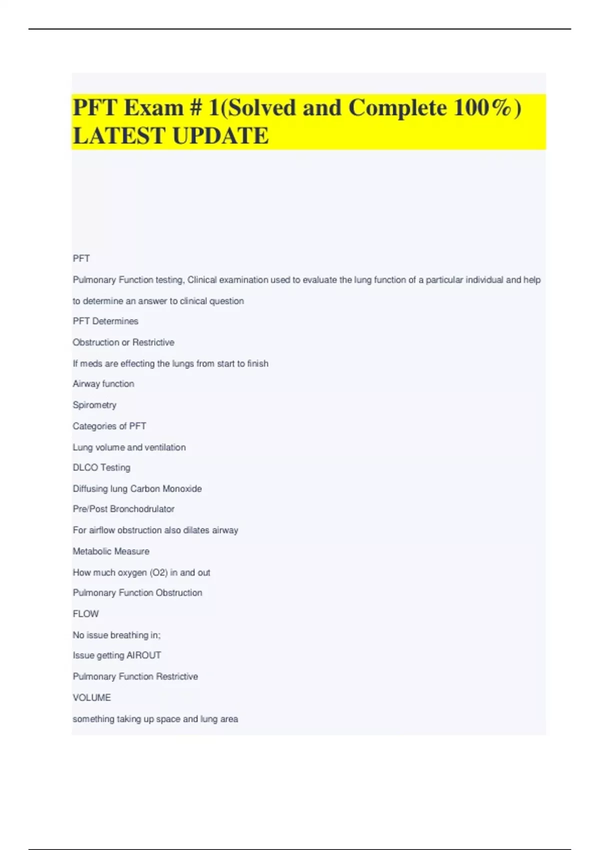 PFT Exam # 1(Solved and Complete 100%) LATEST UPDATE