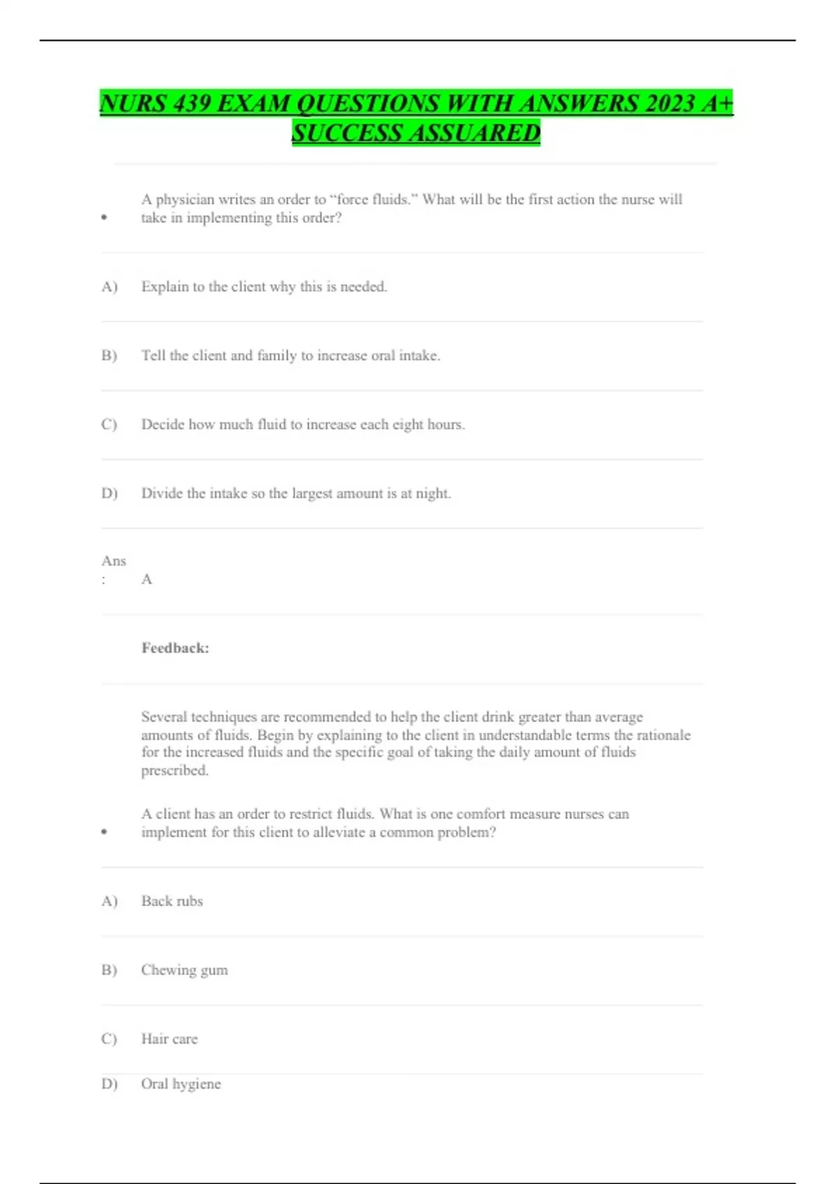 NURS 439 EXAM QUESTIONS WITH ANSWERS 2023 A+ SUCCESS ASSUARED