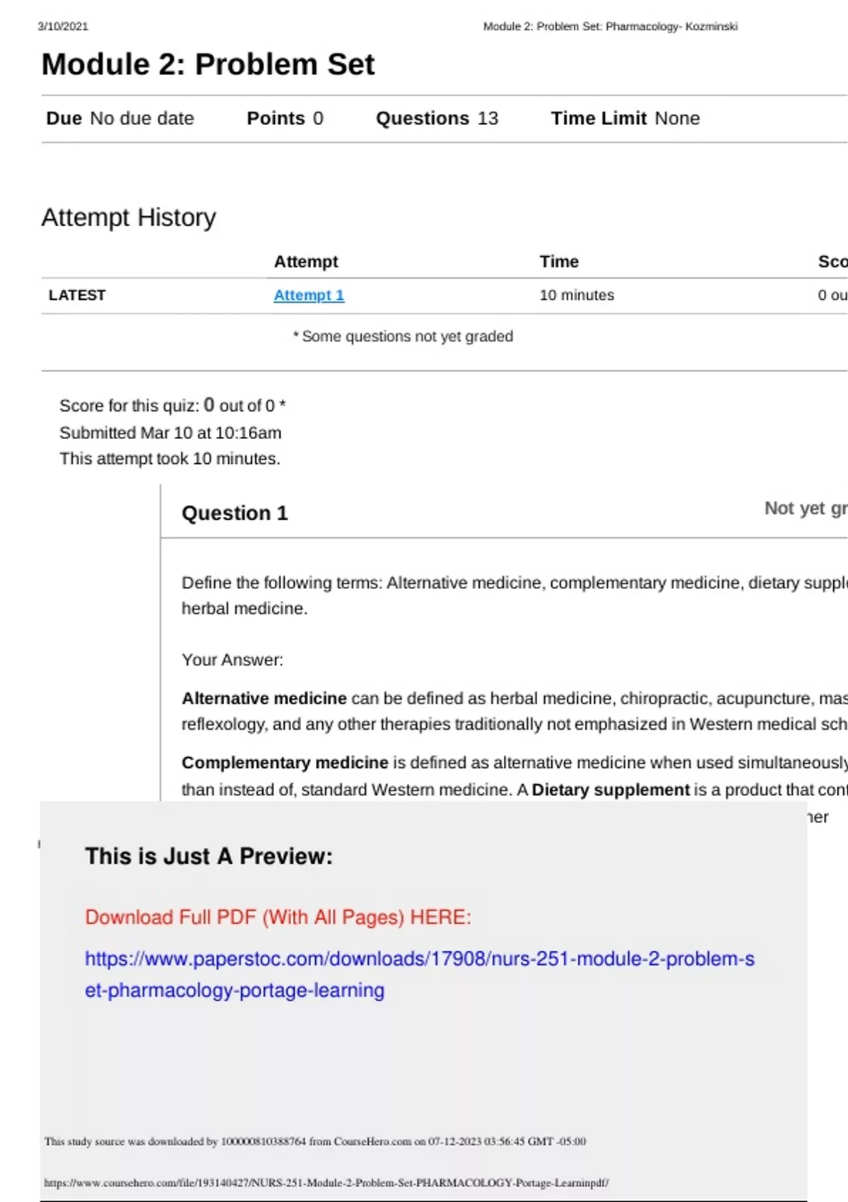 Pharmacology NURS 251 Module Exam 2 portage learning