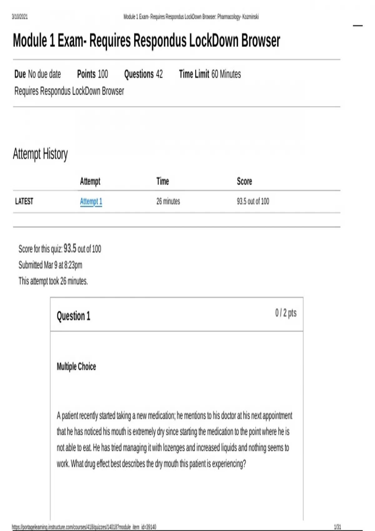 Pharmacology NURS 251 Module Exam 1 portage learning