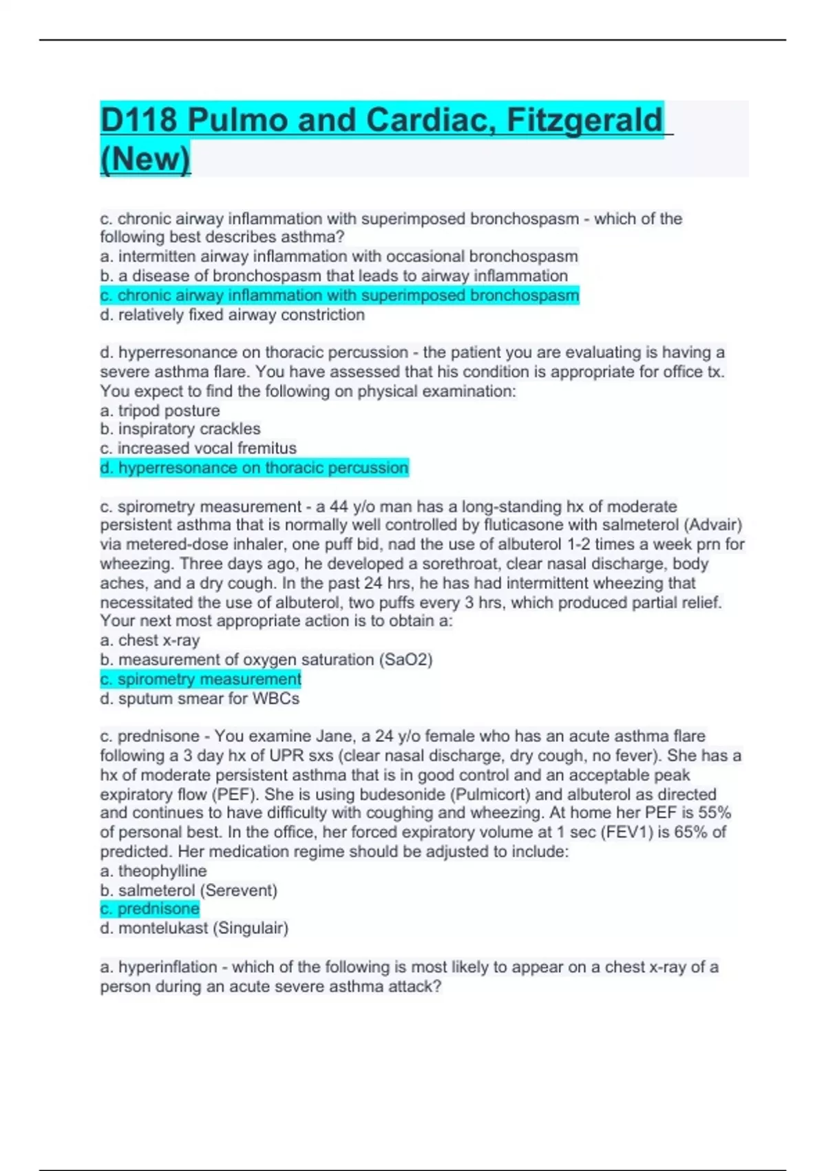 d. hyperresonance on thoracic percussion - the patient you are evaluating is having a