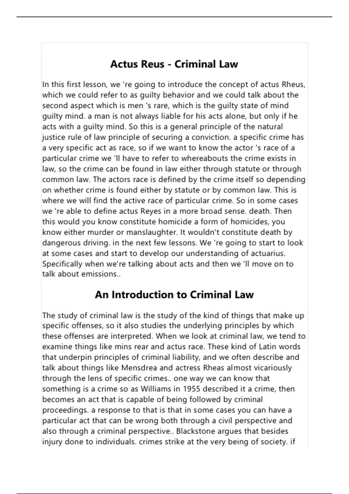 Summary Criminal Law Notes