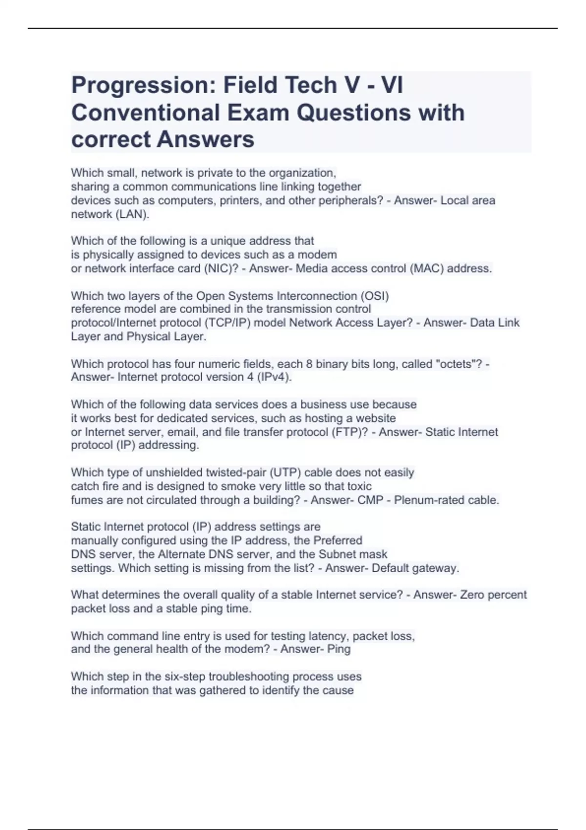 Progression: Field Tech V - VI Conventional Exam Questions with correct Answers