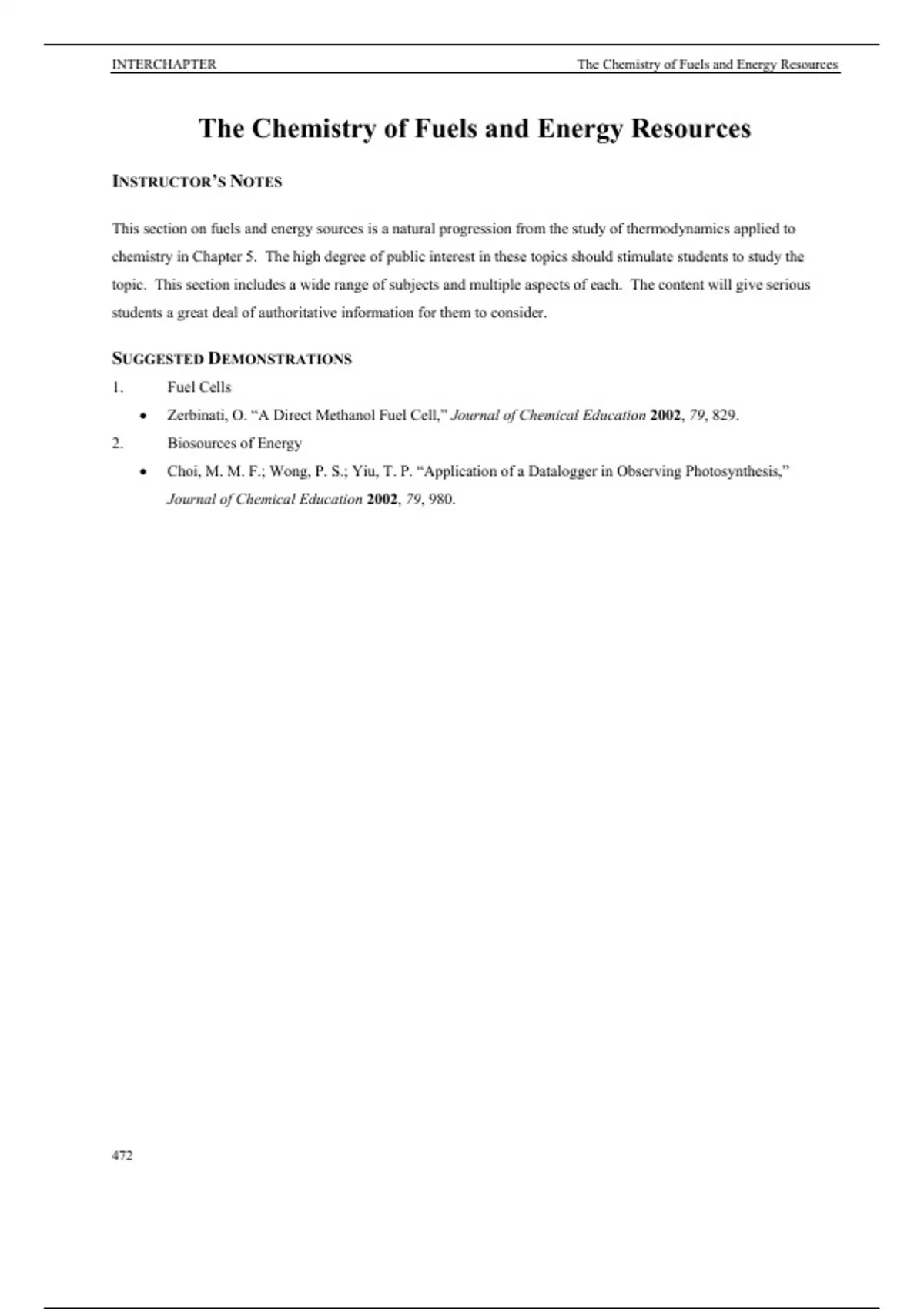 , INTERCHAPTER The Chemistry of Fuels and Energy Resources