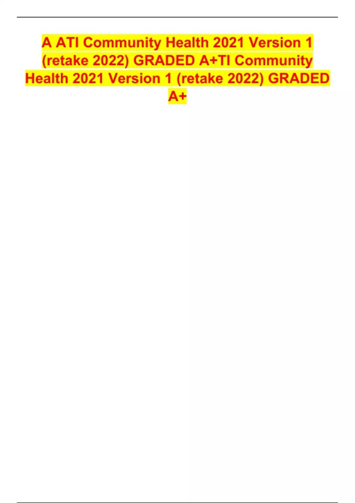 A ATI Community Health 2021 Version 1 (retake 2022) GRADED A+TI Community Health 2021 Version 1 (retake 2022) GRADED A+