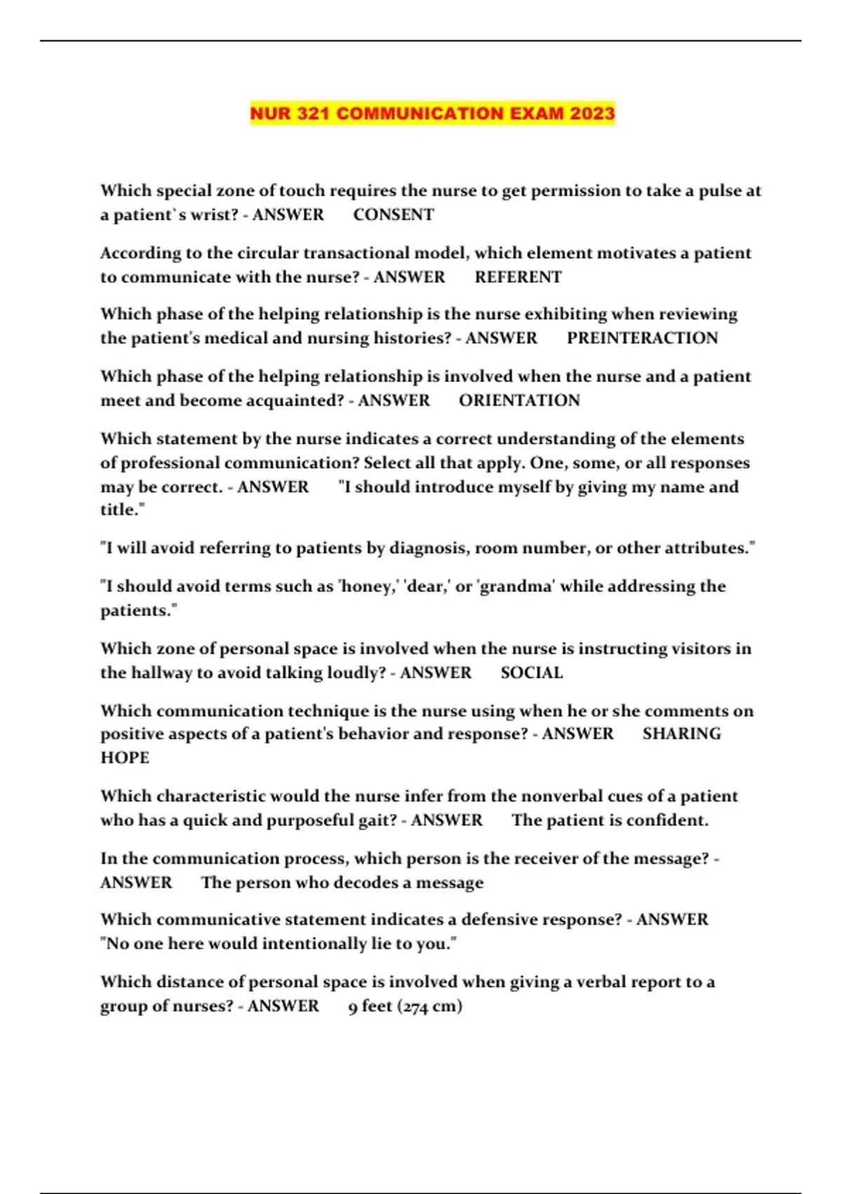 NUR 321 COMMUNICATION EXAM 2023