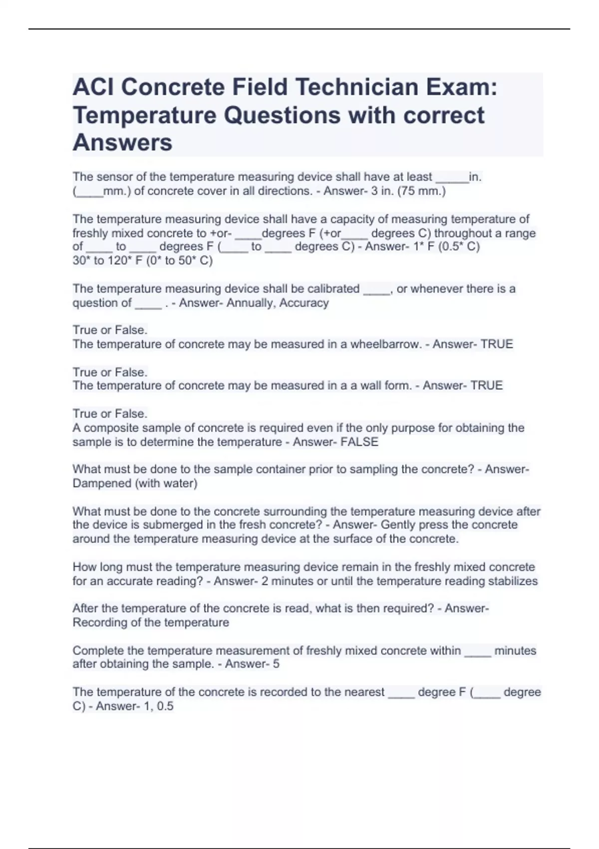 ACI Concrete Field Technician Exam: Temperature Questions with correct Answers