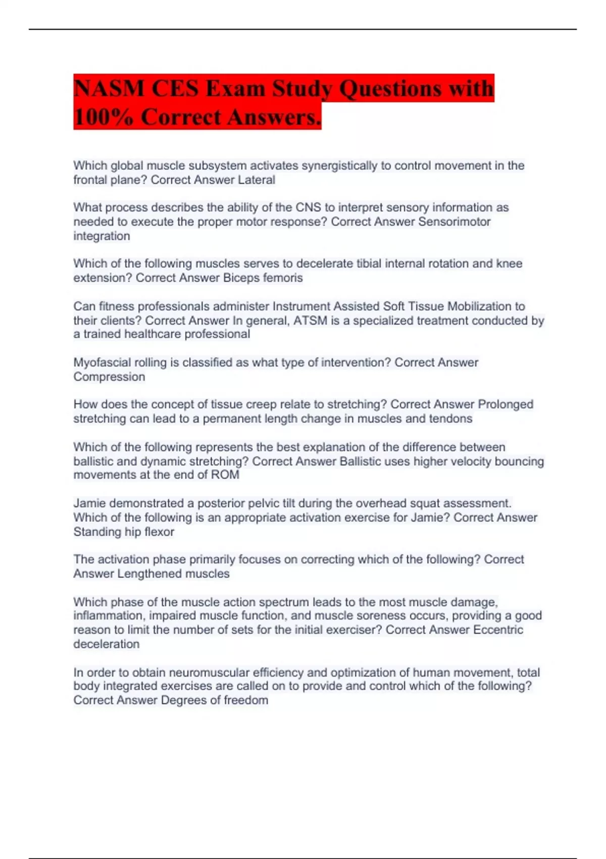 NASM CES Exam Study Questions with 100% Correct Answers.