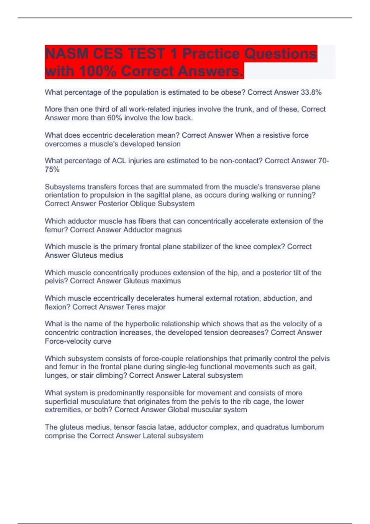 NASM CES TEST 1 Practice Questions with 100% Correct Answers.