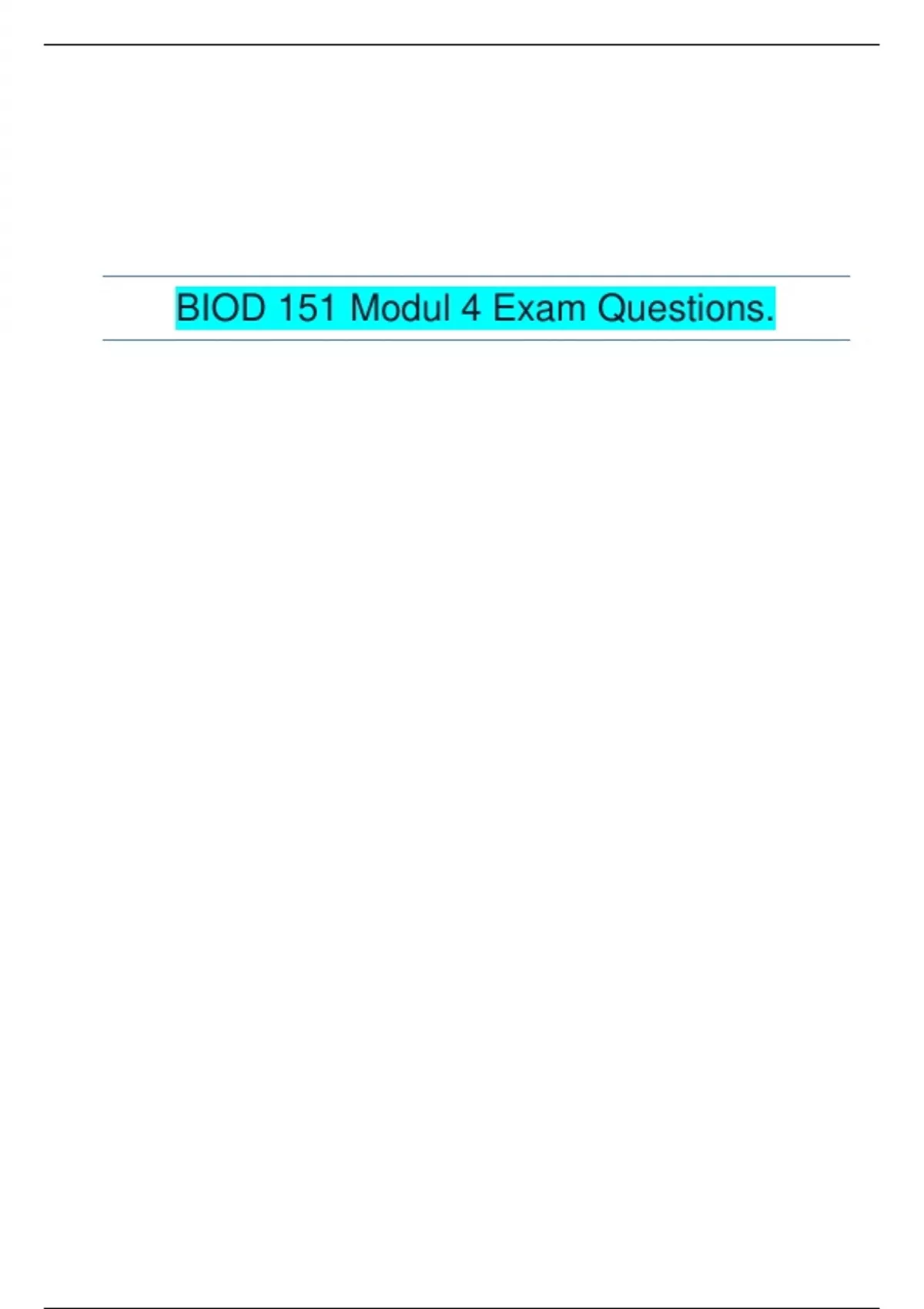 BIOD 151 Modul 4 Exam Questions.| LATEST SOLUTION