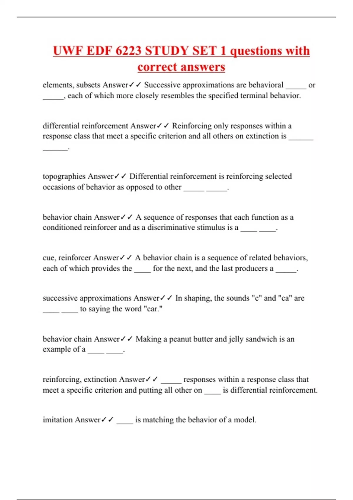 UWF EDF 6223 STUDY SET 1 questions with correct answers