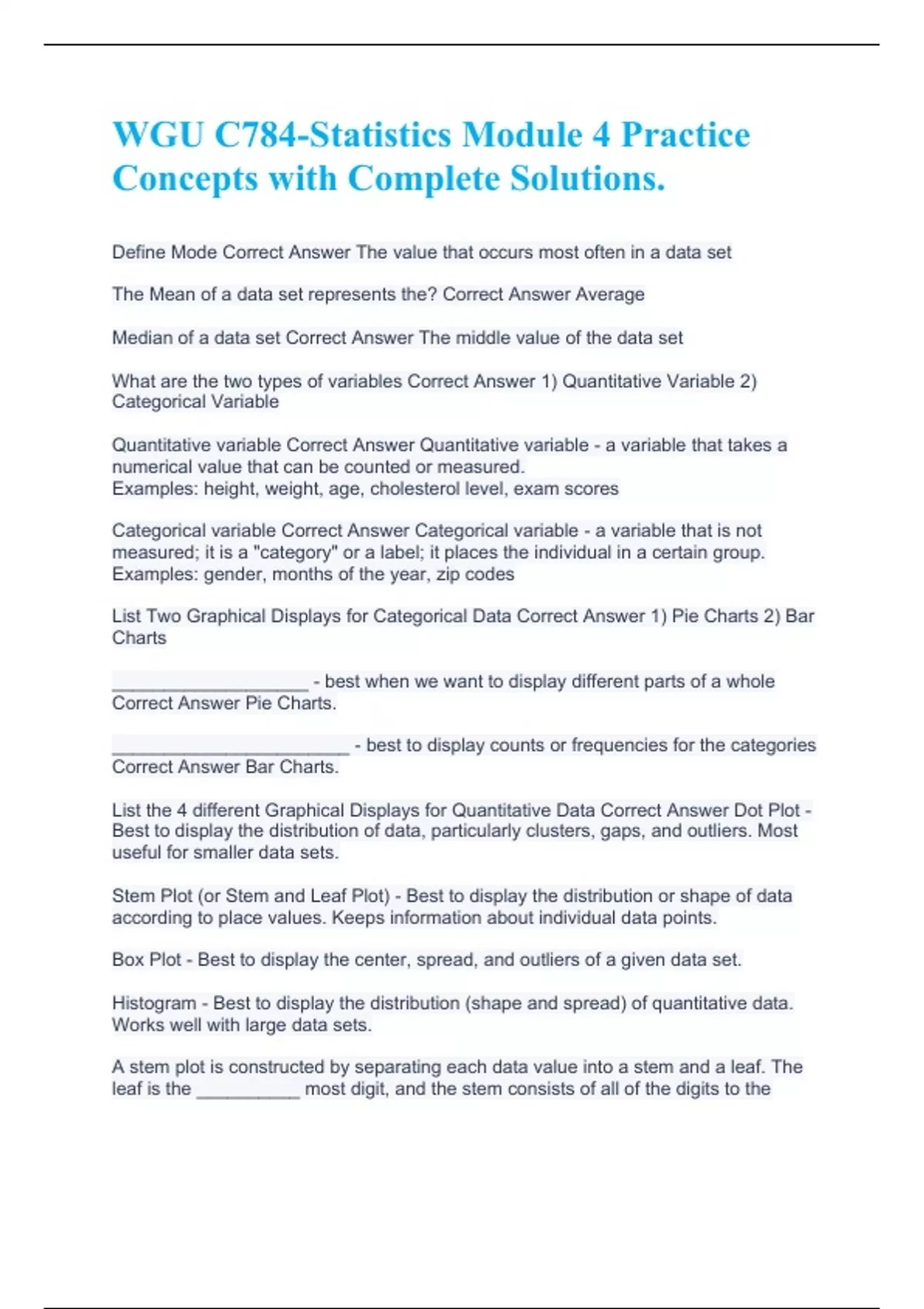 WGU C784-Statistics Module 4 Practice Concepts with Complete Solutions.