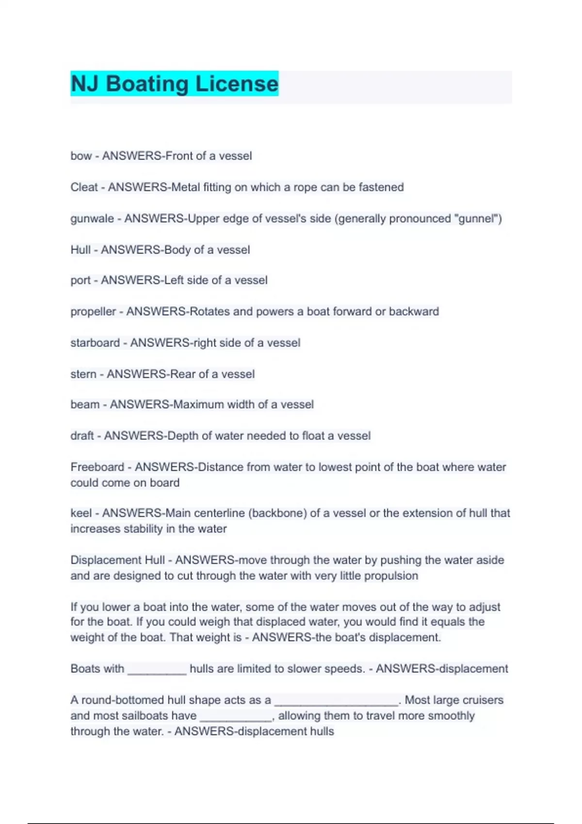 NJ Boating License questions and answers 2023 full solutions verified 100%