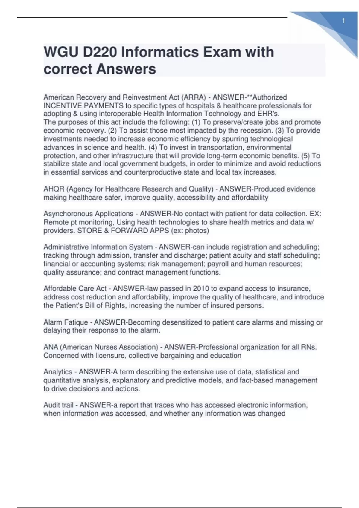 WGU D220 Informatics Exam with correct Answers/WGU D220 Informatics Exam with correct Answers/WGU D220 Informatics Exam with correct Answers/WGU D220 Informatics Exam with correct Answers/WGU D220 Informatics Exam with correct Answers/WGU D220 Informatics Exam with correct Answers
