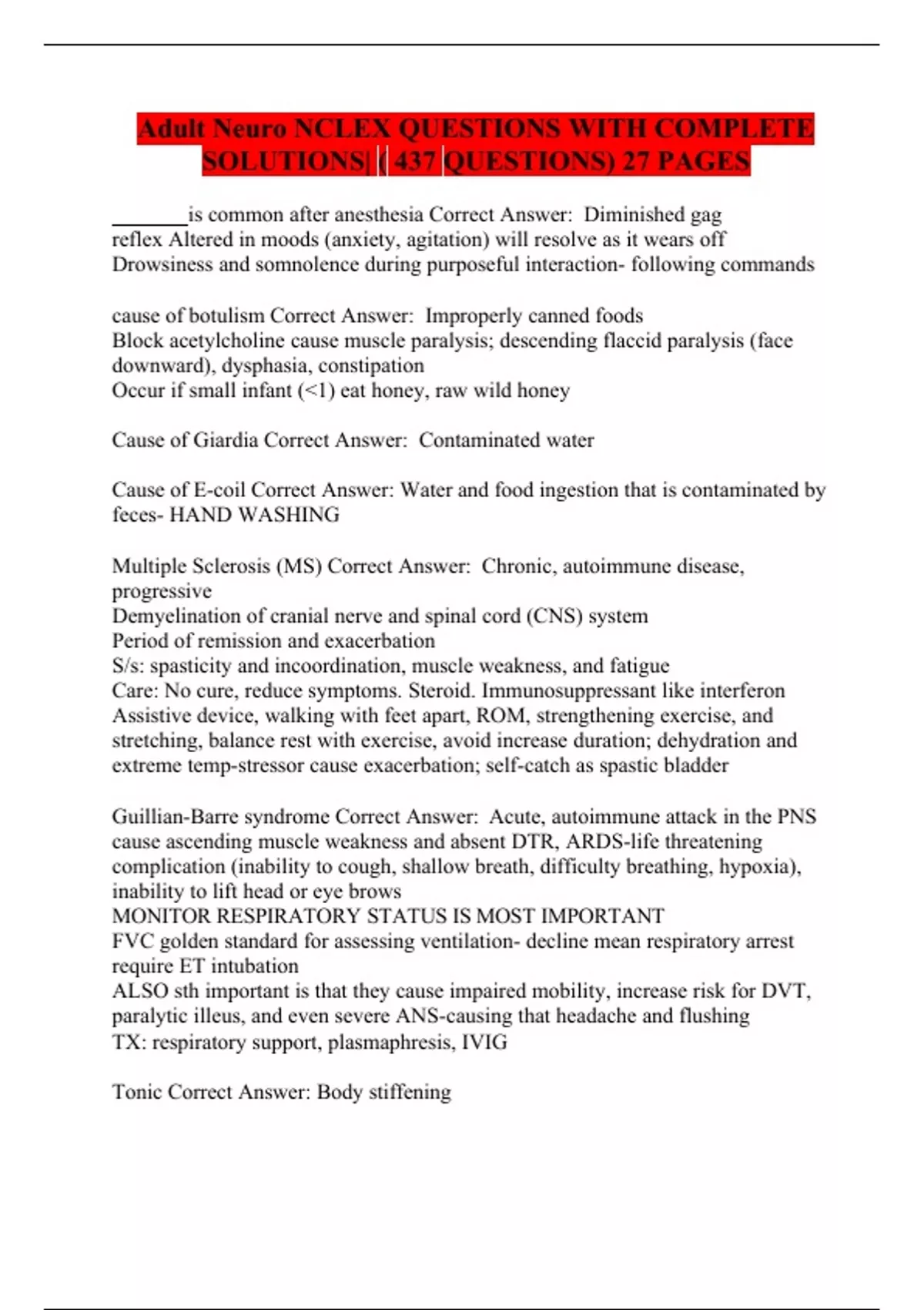 - Adult Neuro NCLEX