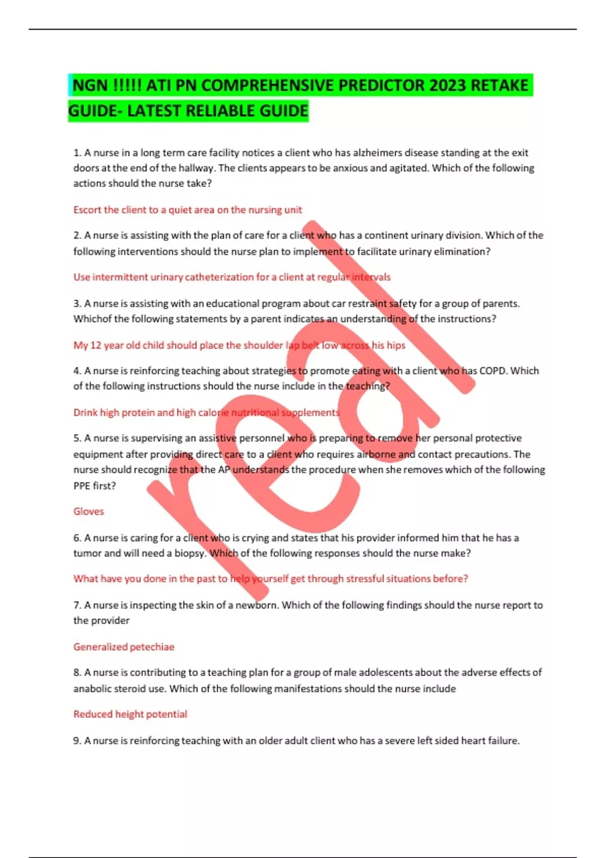 NGN !!!!! ATI PN COMPREHENSIVE PREDICTOR 2023 RETAKE GUIDE- LATEST RELIABLE GUIDE