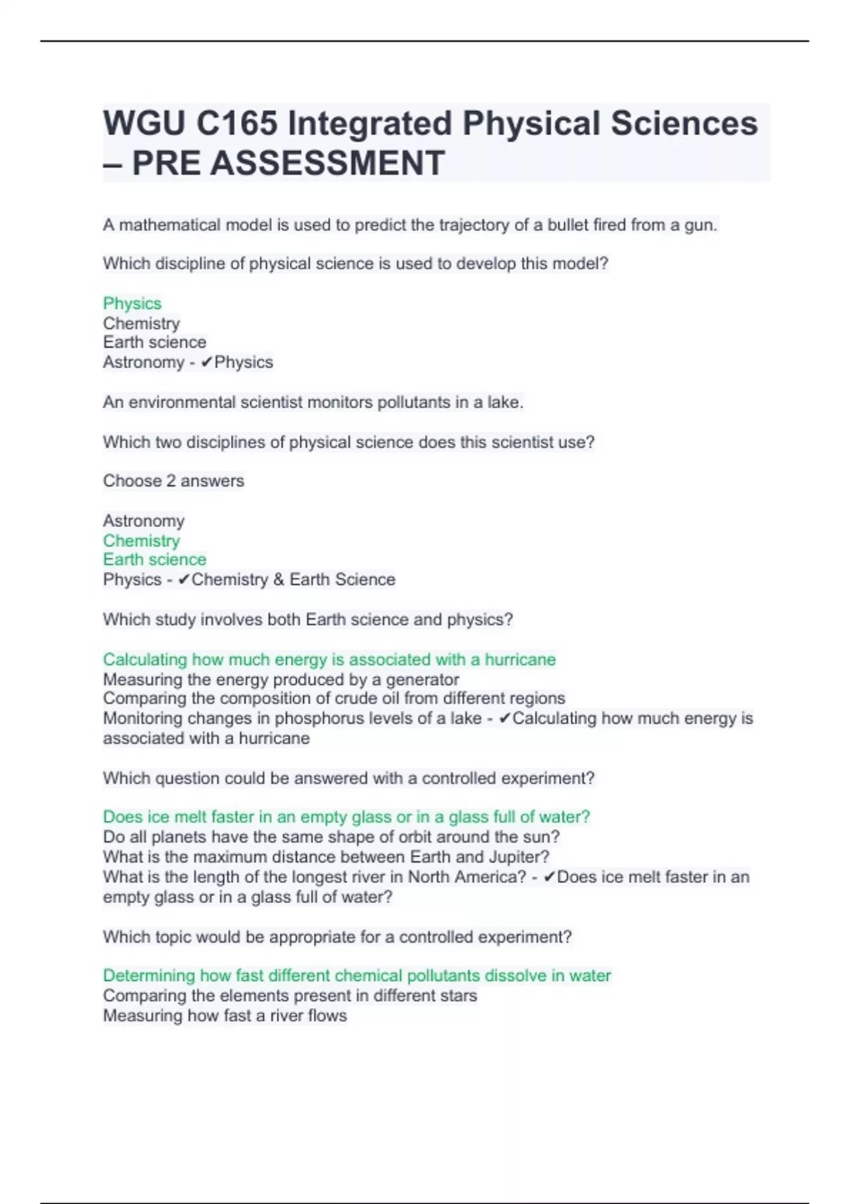 WGU C165 Integrated Physical Sciences – PRE ASSESSMENT.