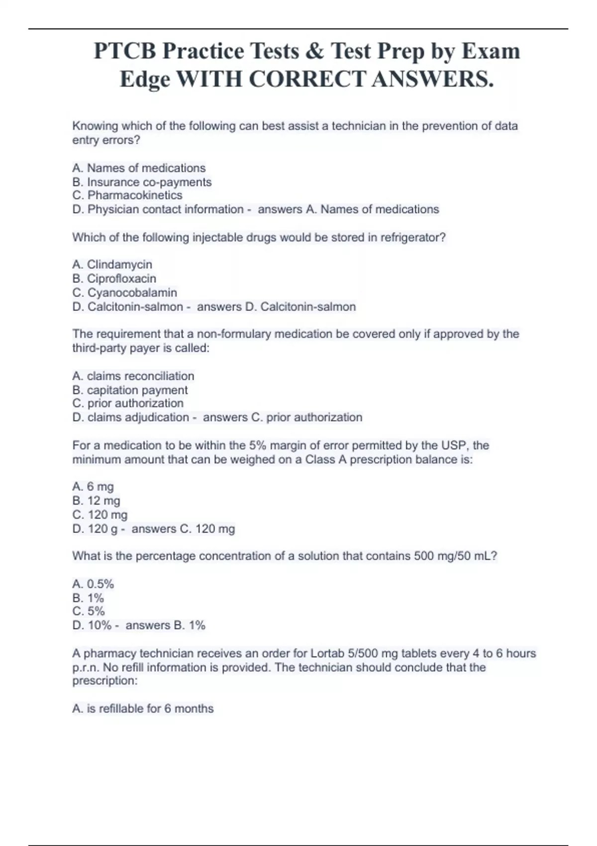 PTCB Practice Tests & Test Prep by Exam Edge WITH CORRECT ANSWERS.