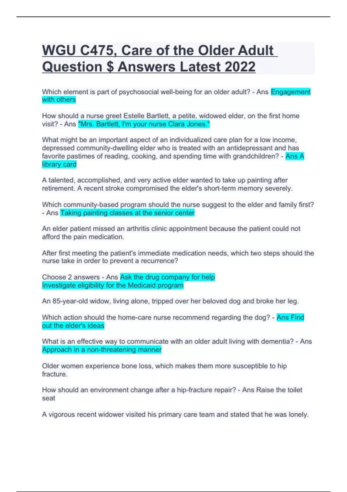 WGU C475, Care of the Older Adult