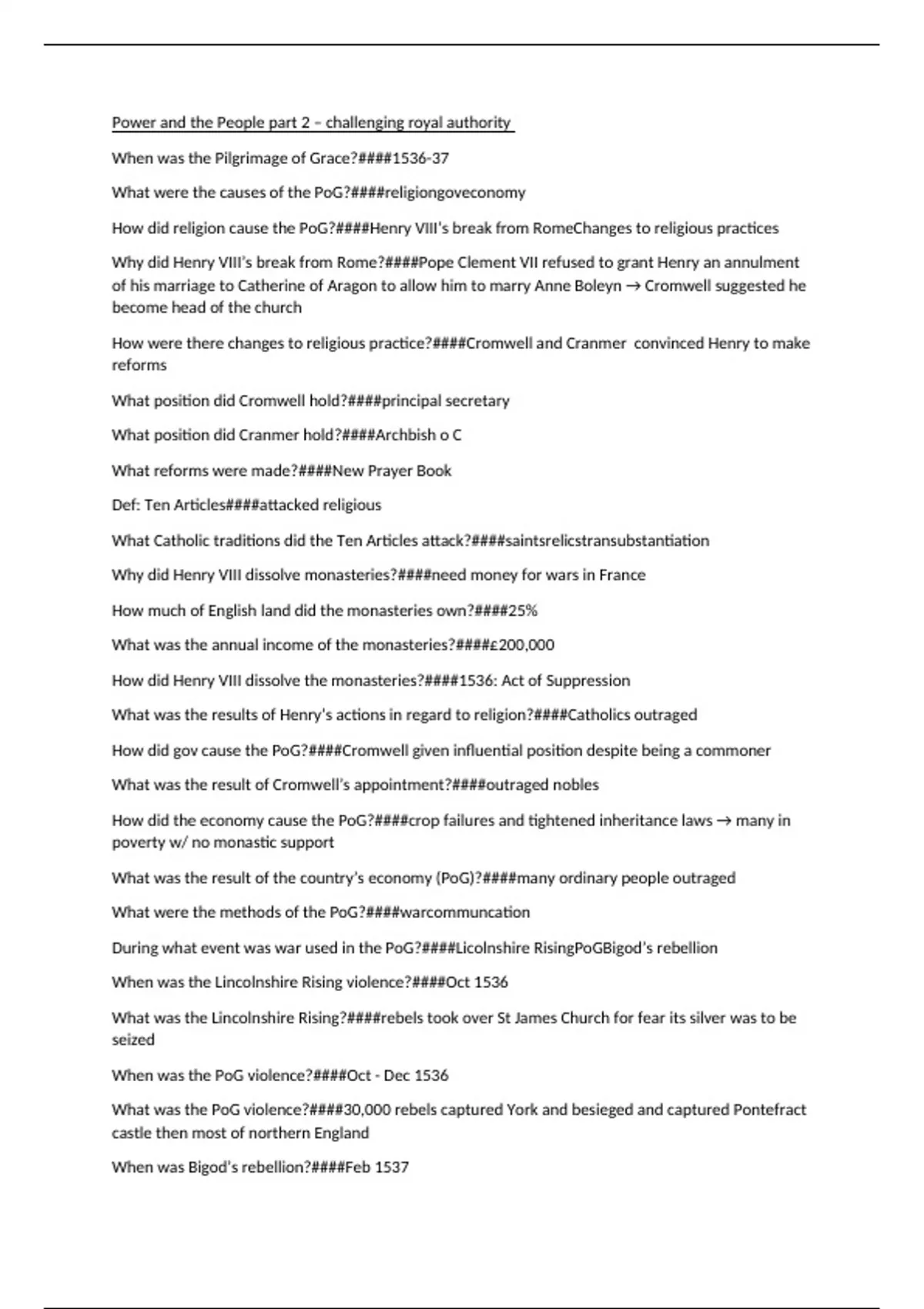 - Covers all Power and the People modules (AB Britain: Power and the people: c1170 to the present day) in AQA GCSE History - detailed - created by a student who took exams '23 season (predicted/mocks 8/9s) - can be imported into any flashcard app/website - follow grade 9 essay structure - has accompanying textbook available to purchase - essay structure available to purchase - affordable - these took hours to make so the cost is due to the amount of effort put in *some topics are not included in flashcards but are in the textbook