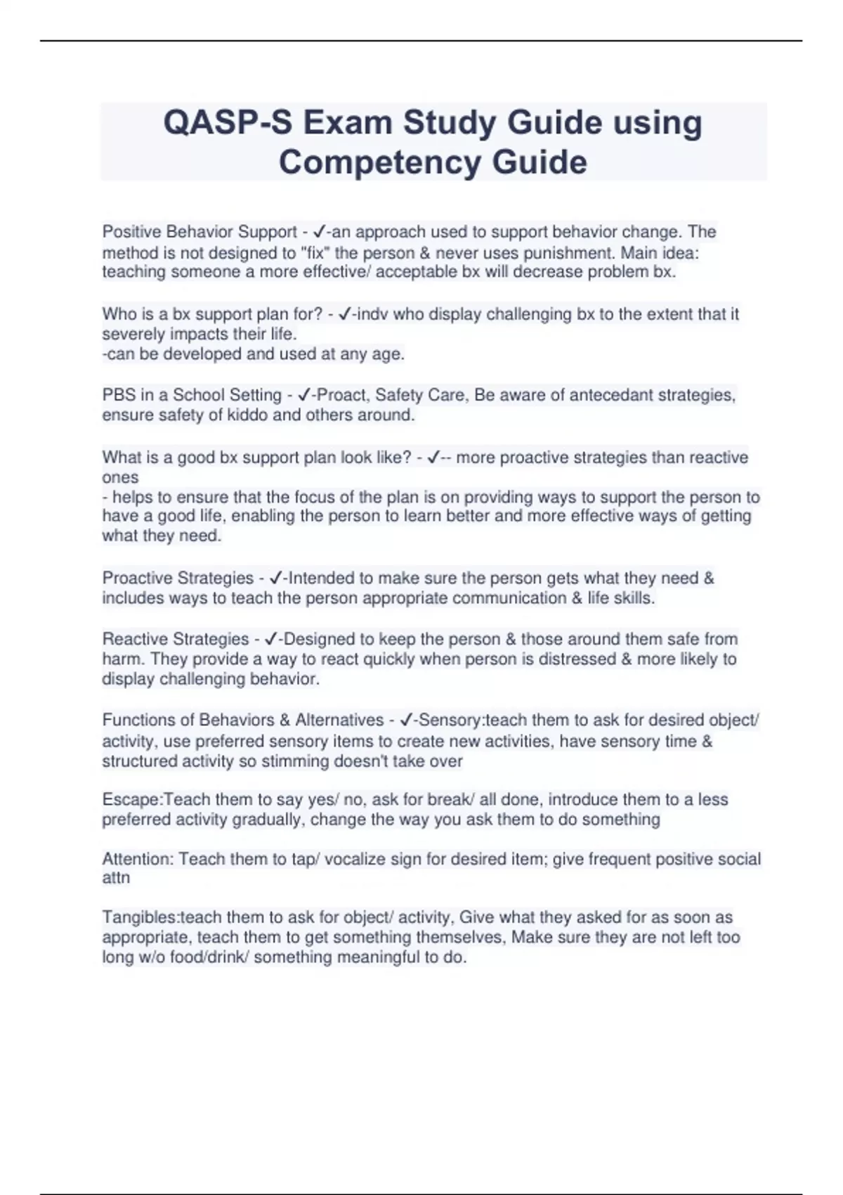 QASP-S Exam Study Guide using Competency Guide (Latest 2023/2024) Verified Answers by Expert