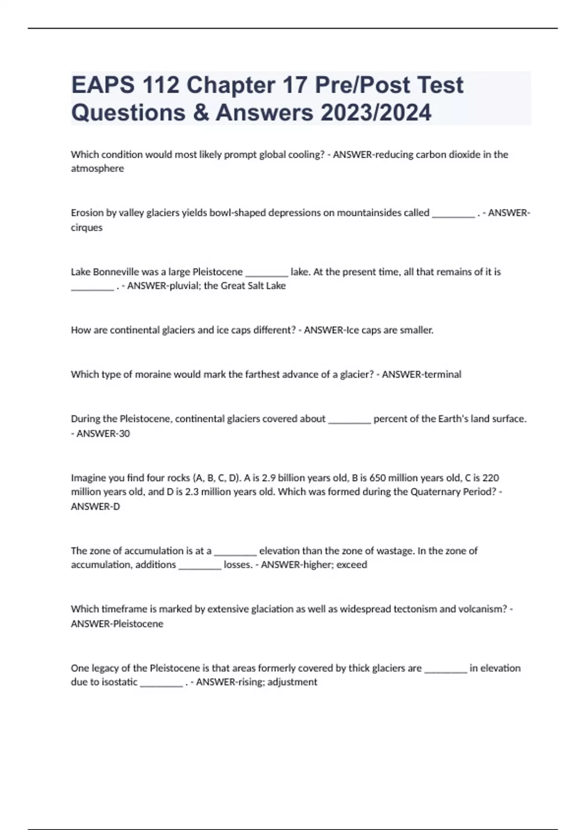 ANSWER-Pleistocene