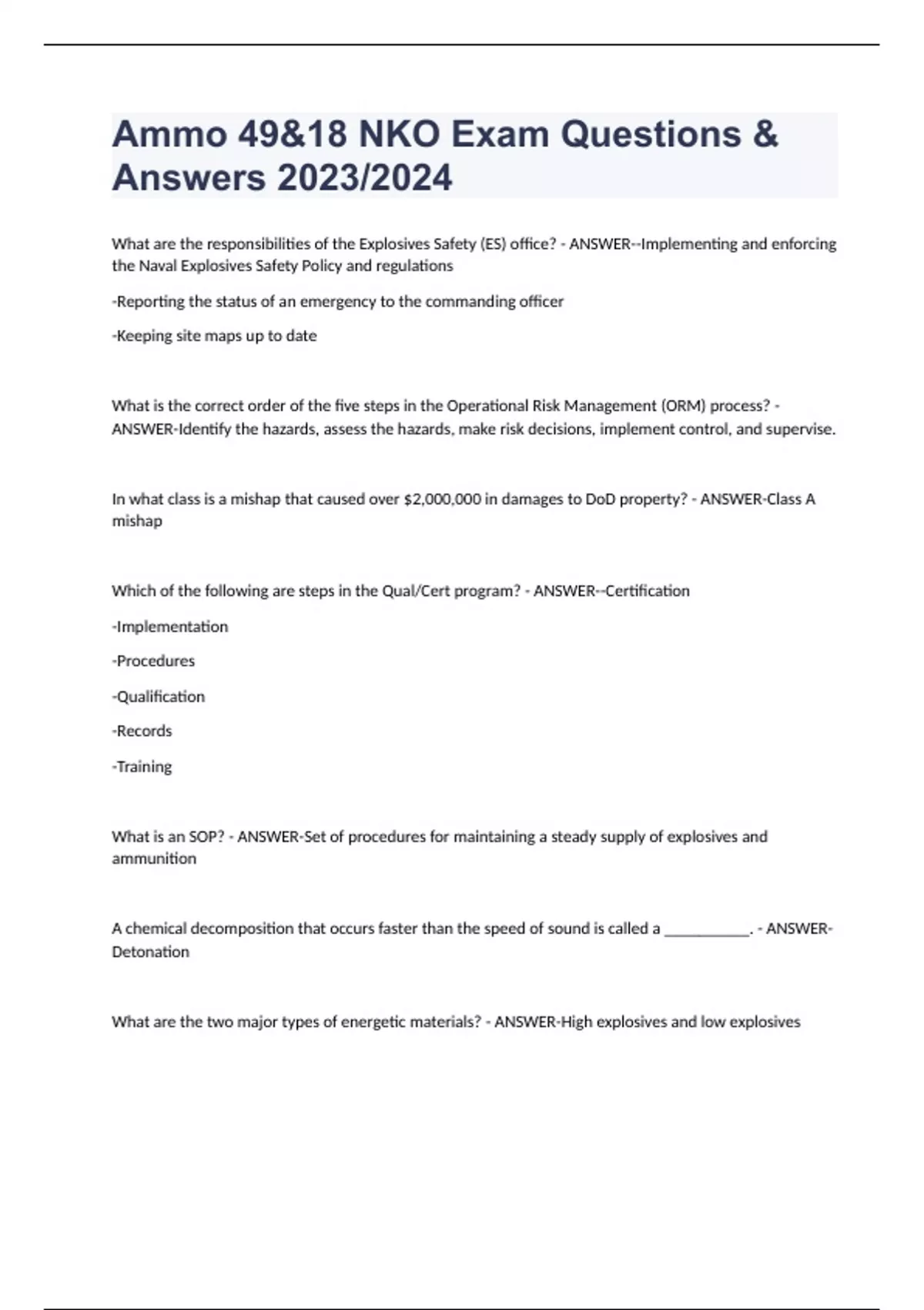 What is an SOP? - ANSWER-Set of procedures for maintaining a steady supply of explosives and