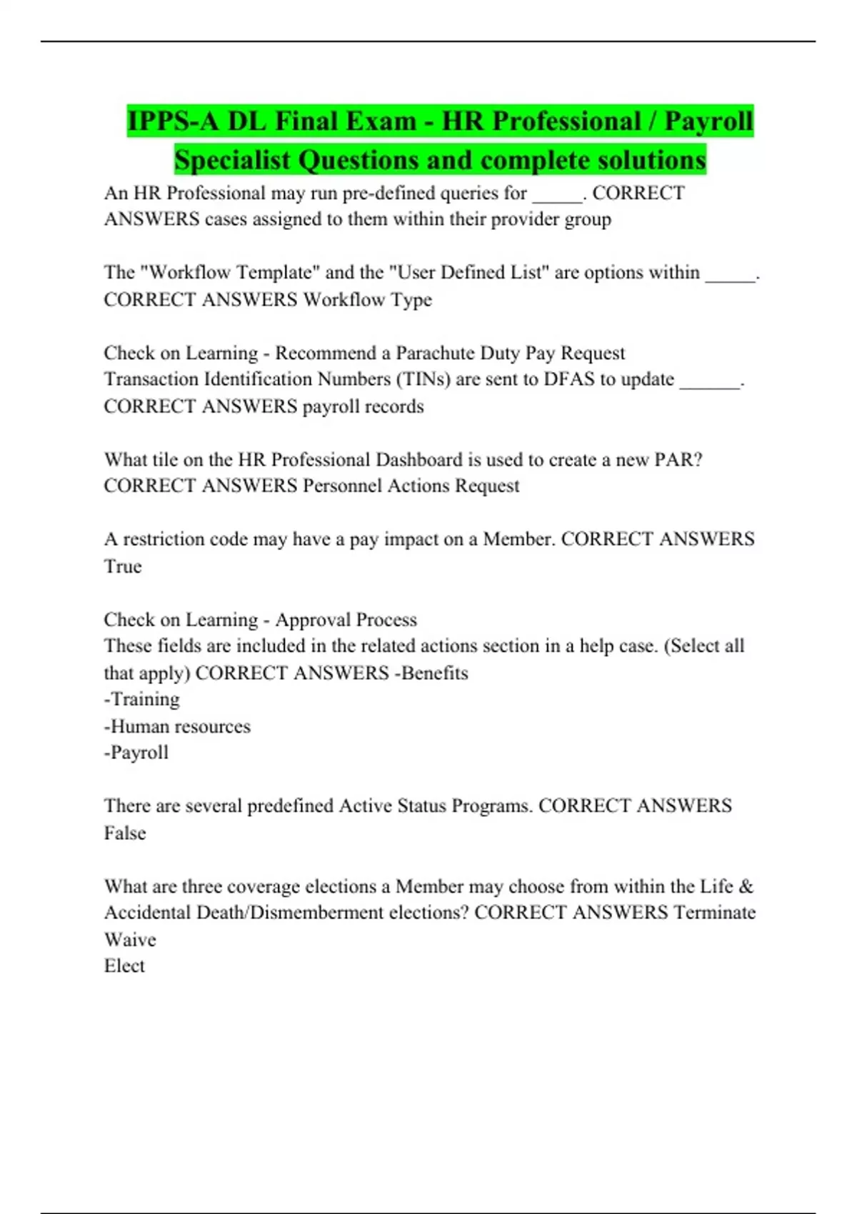 Specialist Questions and complete solutions