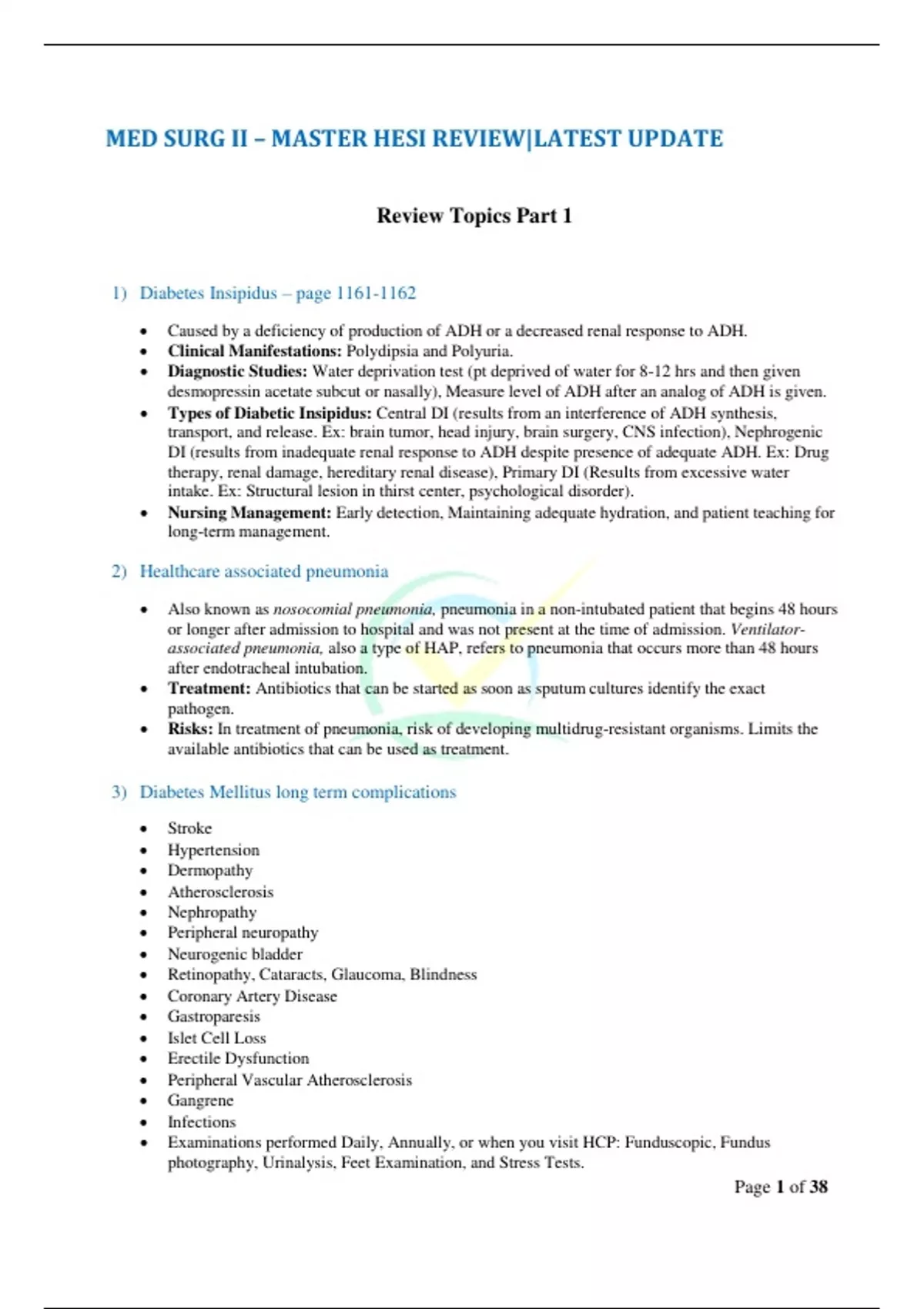 med surg ii – master hesi review|latest updae