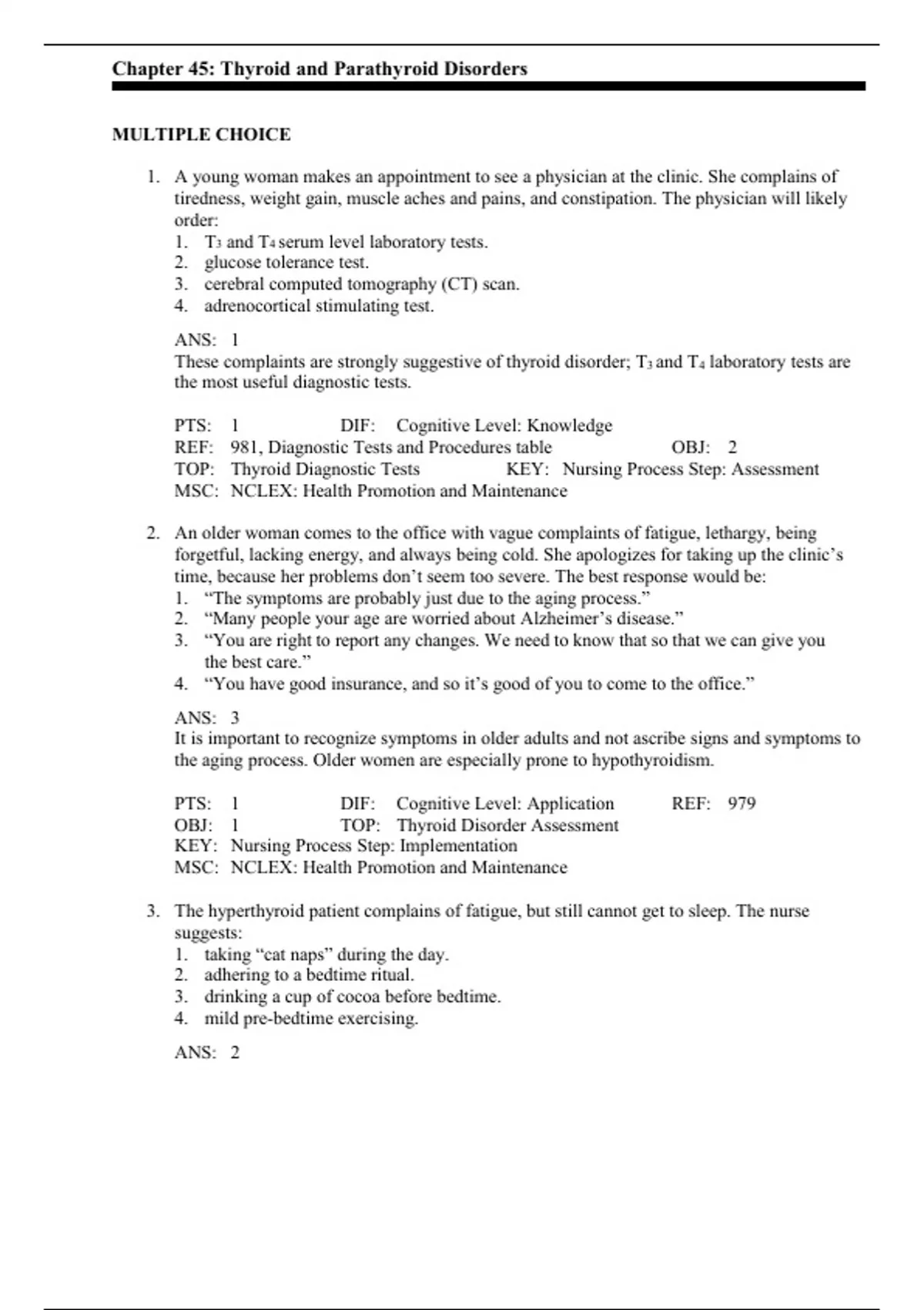 NCLEX Test 45 chapter 45 Thyroid and Parathyroid Disorders