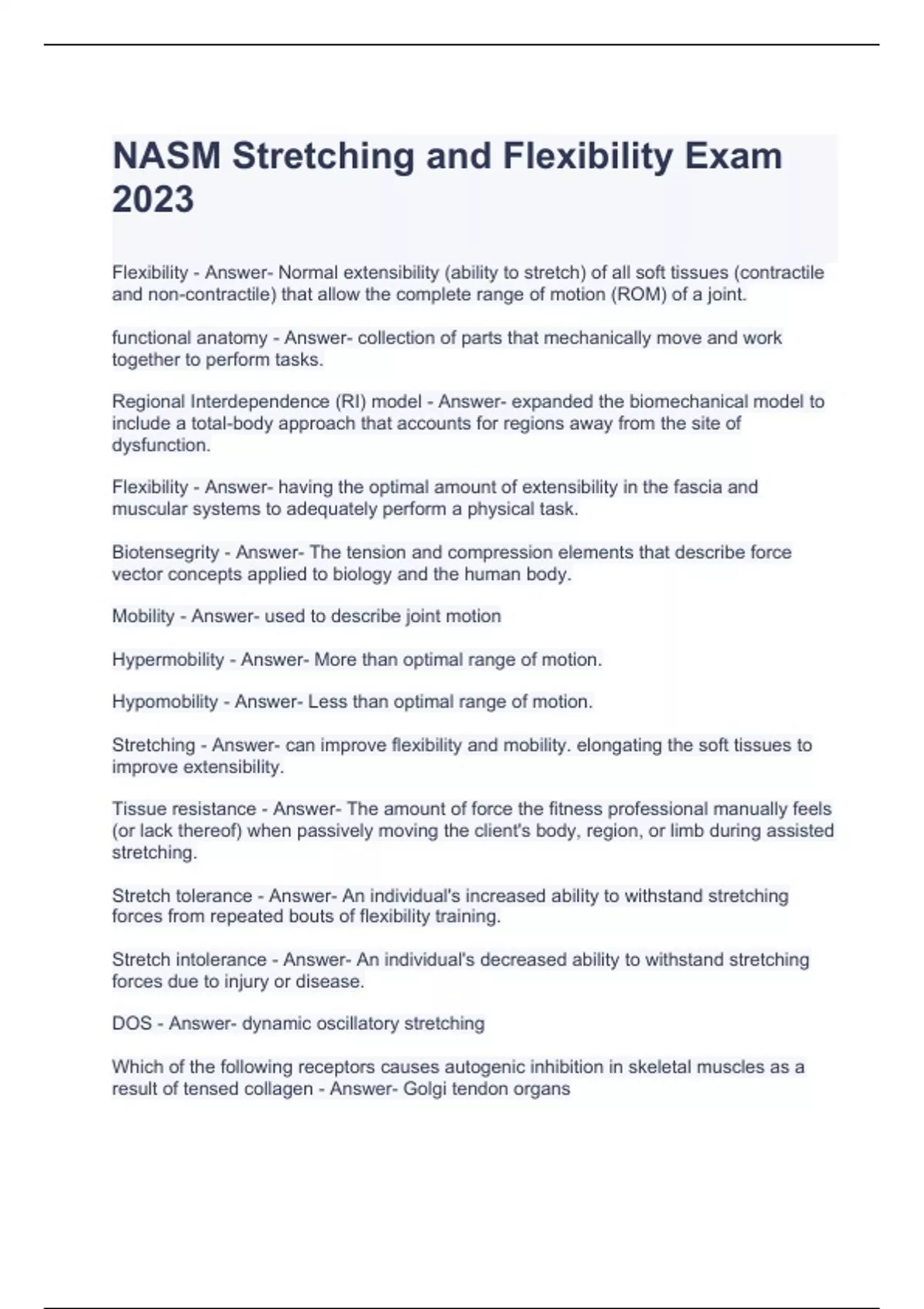 nasm stretching and flexibility exam 2023