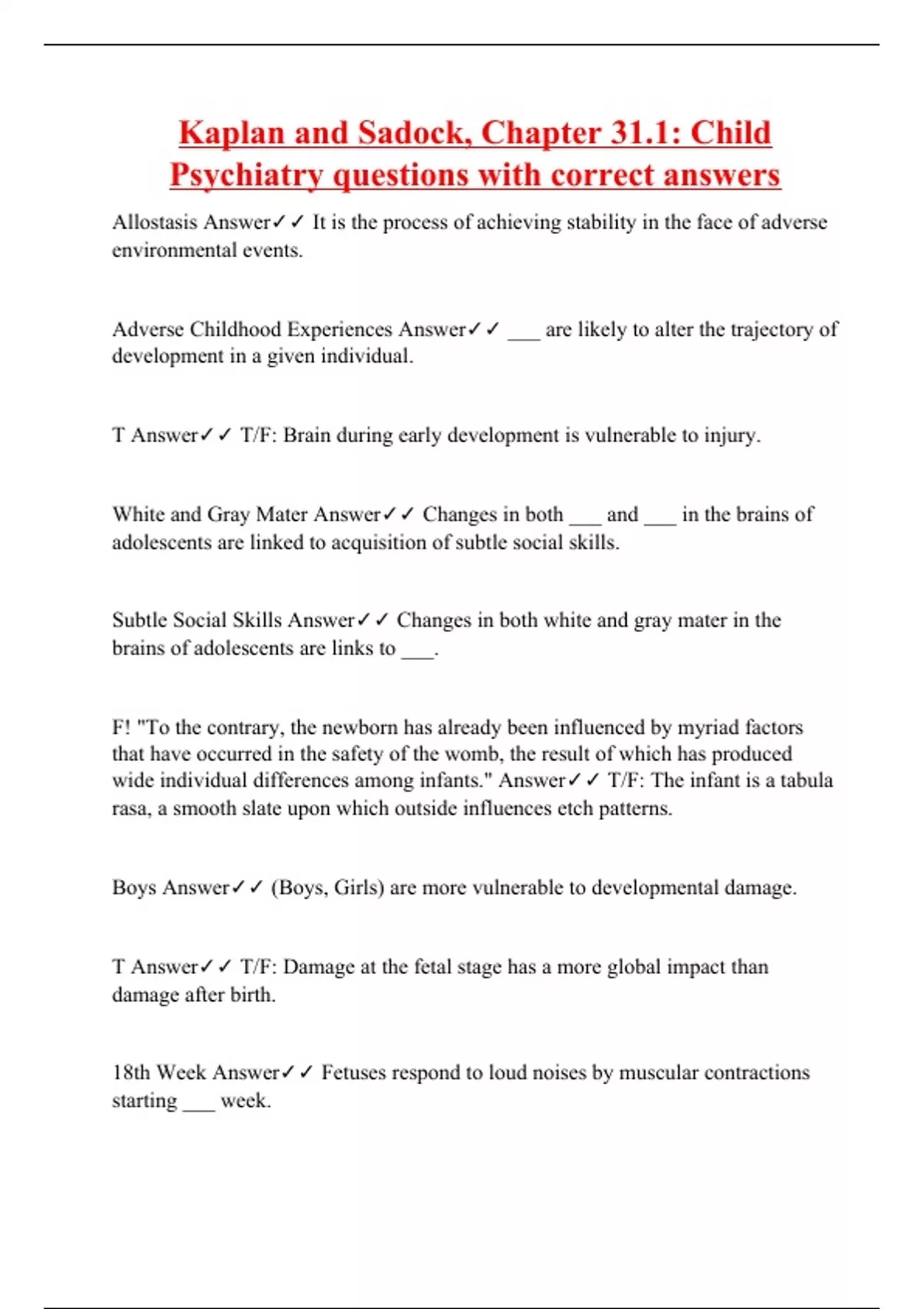 Kaplan and Sadock, Chapter 31.1: Child Psychiatry questions with correct answers