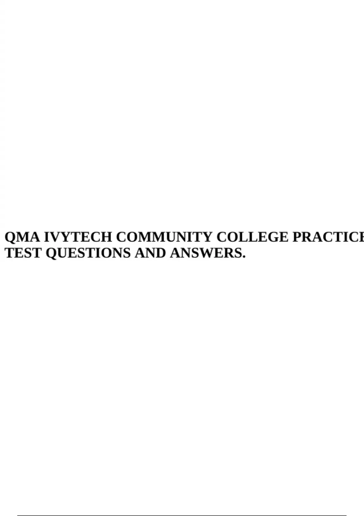 QMA IVYTECH COMMUNITY COLLEGE PRACTICE TEST QUESTIONS AND ANSWERS.