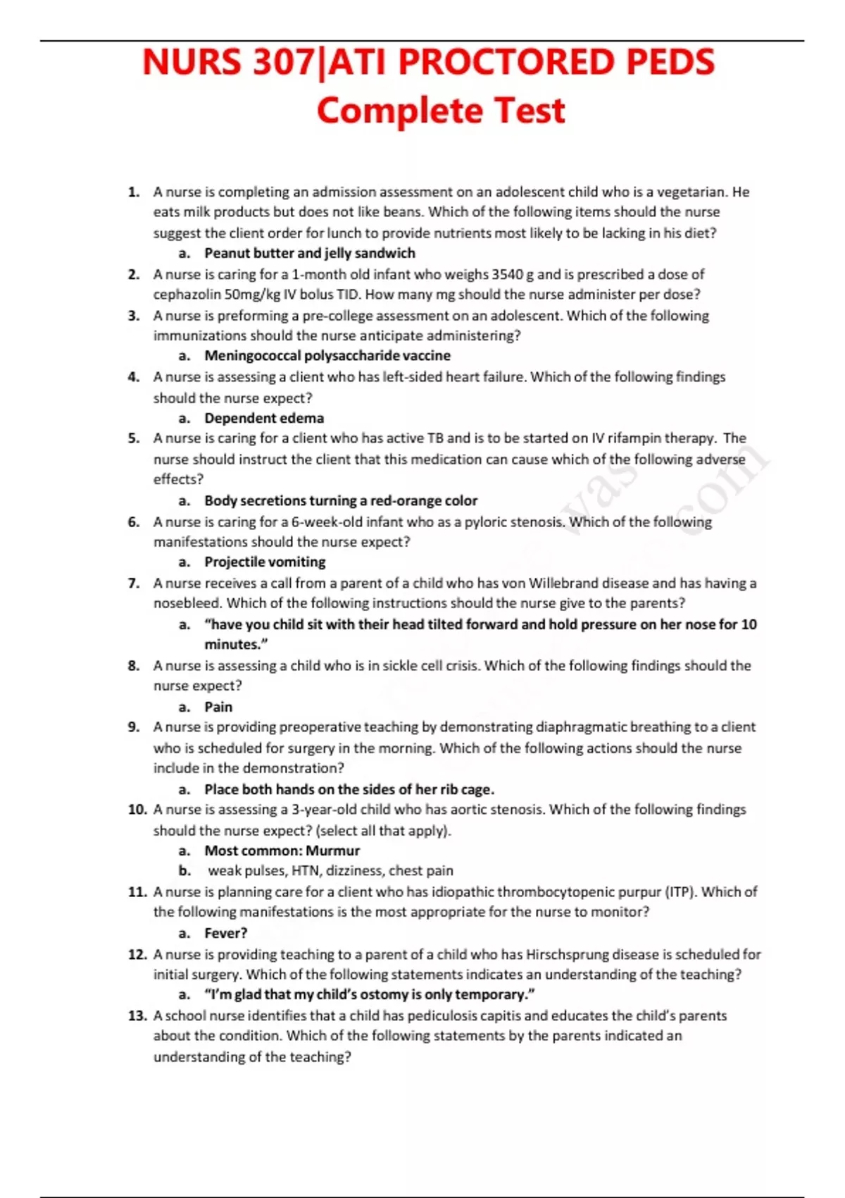 NURS 307|ATI PROCTORED PEDS Complete Test