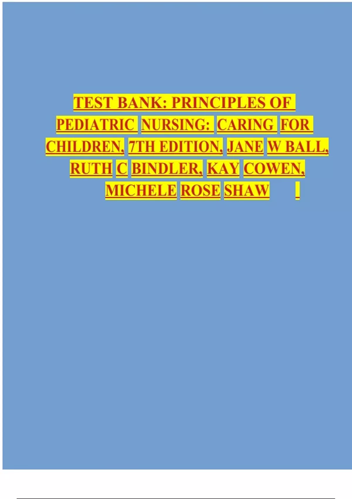 TEST BANK: PRINCIPLES OF PEDIATRIC NURSING: CARING FOR CHILDREN, 7TH EDITION, JANE W BALL, RUTH C BINDLER, KAY COWEN, MICHELE ROSE SHAW