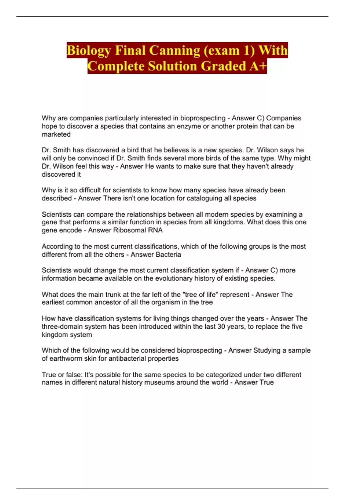 Biology Final Canning (exam 1) With Complete Solution Graded A+...