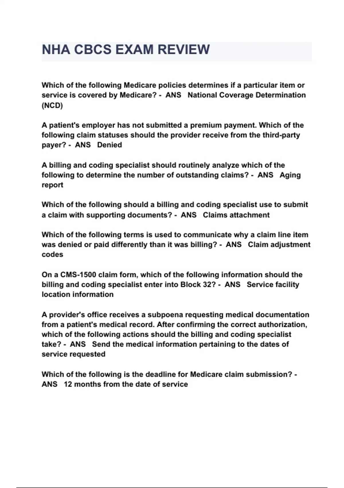 NHA CBCS EXAM REVIEW QUESTIONS & ANSWERS 2023 ( A+ GRADED 100% VERIFIED)