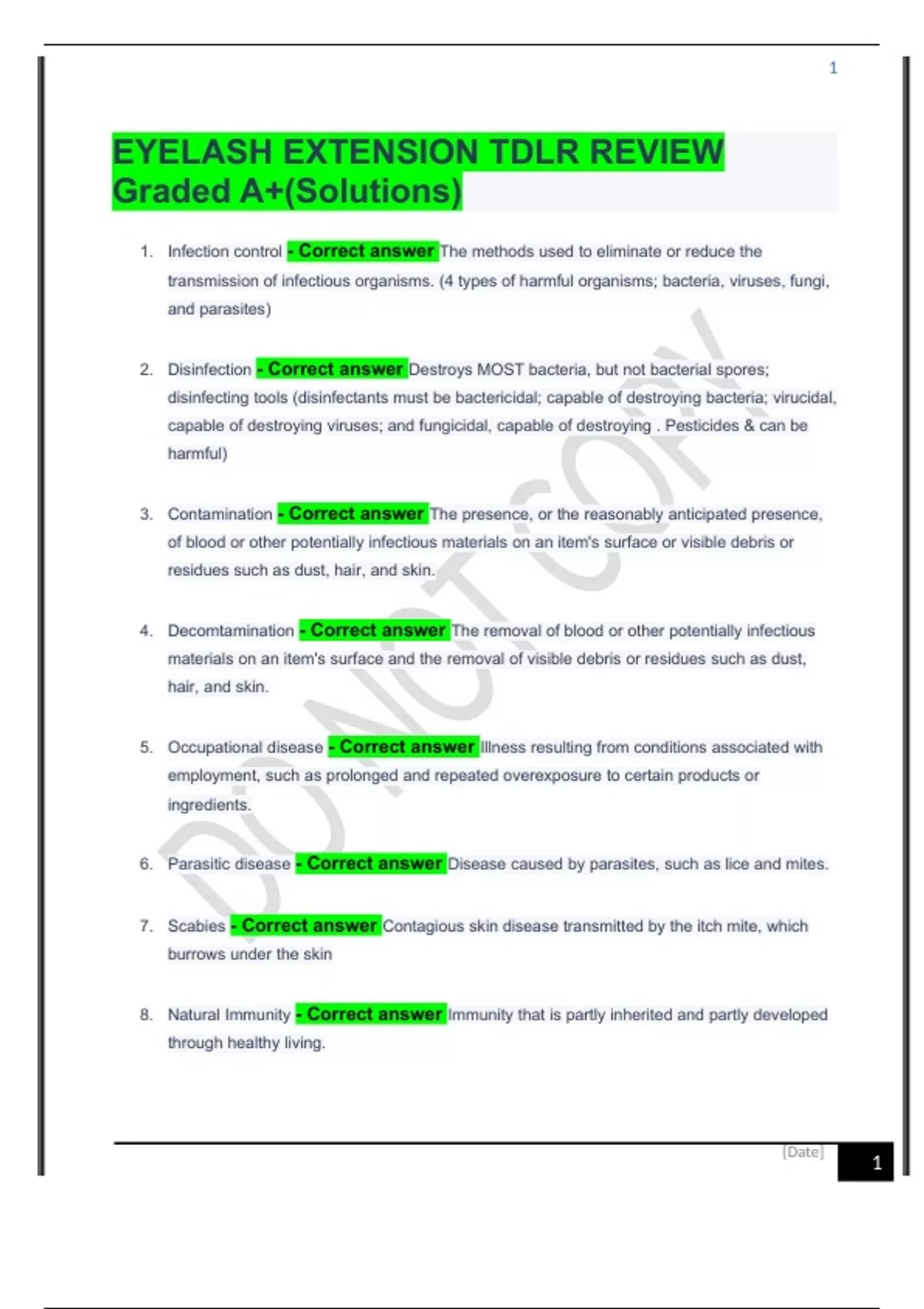 EYELASH EXTENSION TDLR REVIEW Graded A+(Solutions)