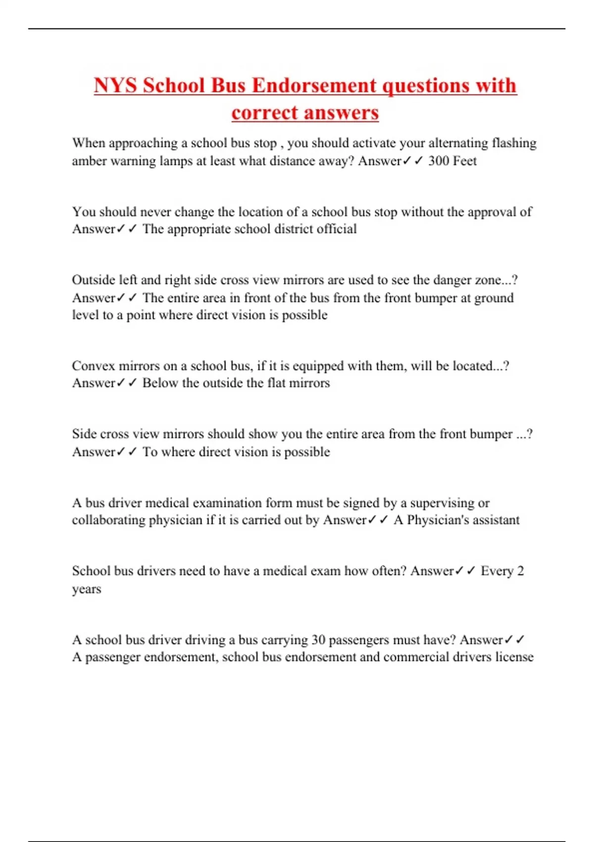 NYS School Bus Endorsement questions with correct answers