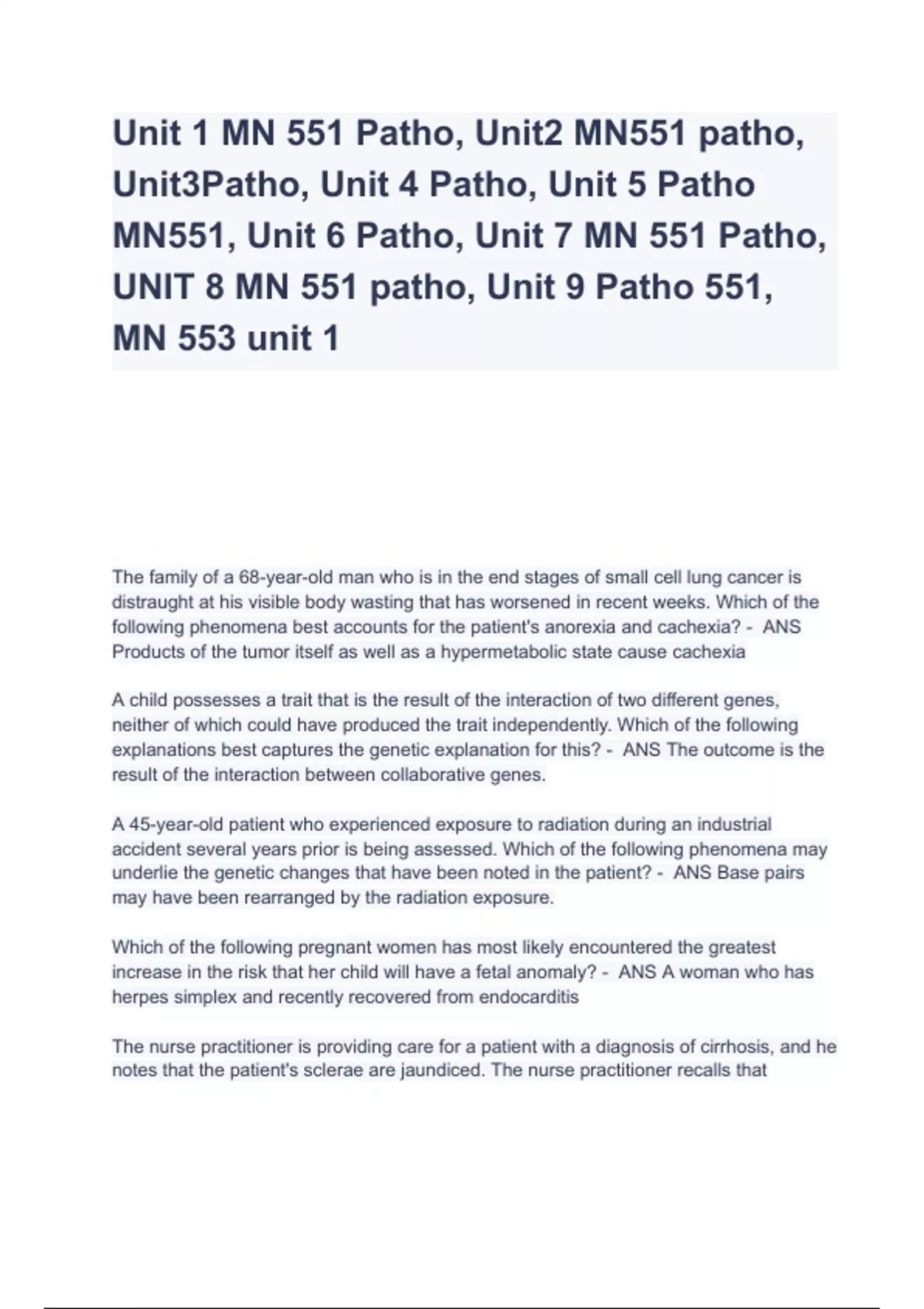 MN 551 QUIZBANK latest 2023-2024 Questions & Answers (A+ GRADED 100% VERIFIED) Package deal